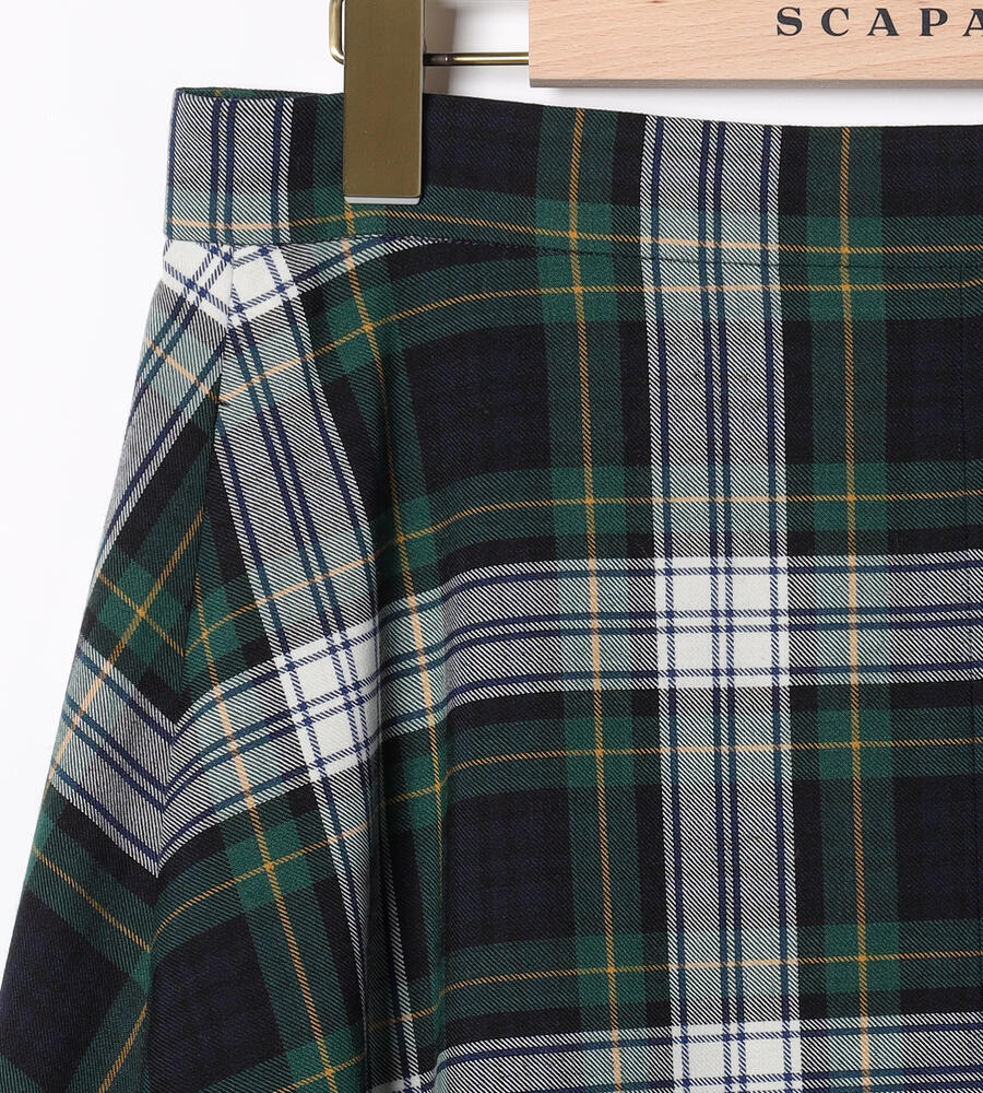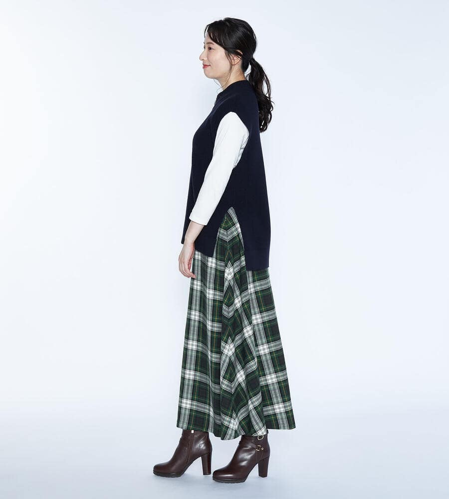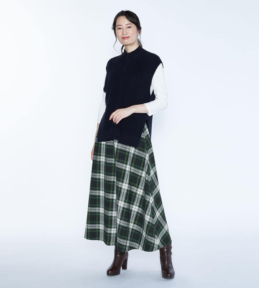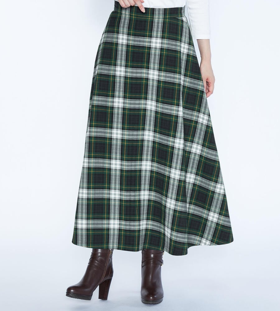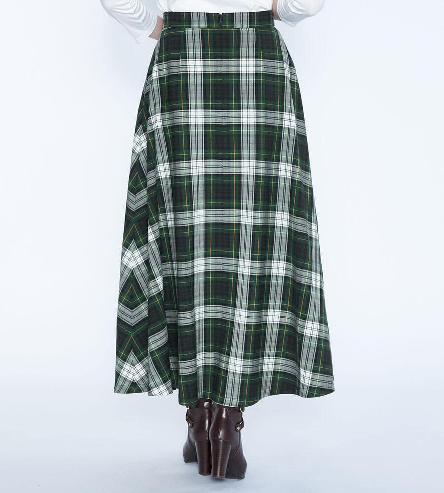 トラディショナルなタータンチェックで仕立てた秋冬スタイルの主役にふさわしいロングスカート。裾に向かってふわりと広がる優美なフレアシルエットが華やかな印象のアイテムです。バックファスナー仕様。同柄のジャケットとセットアップコーデも楽しめます。