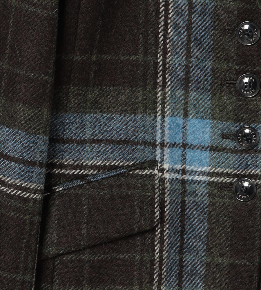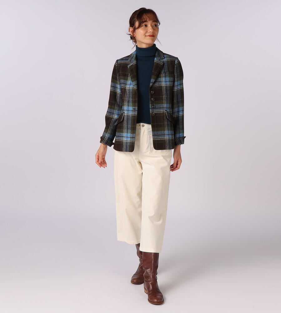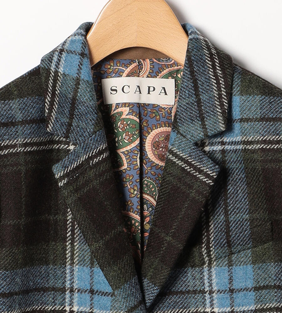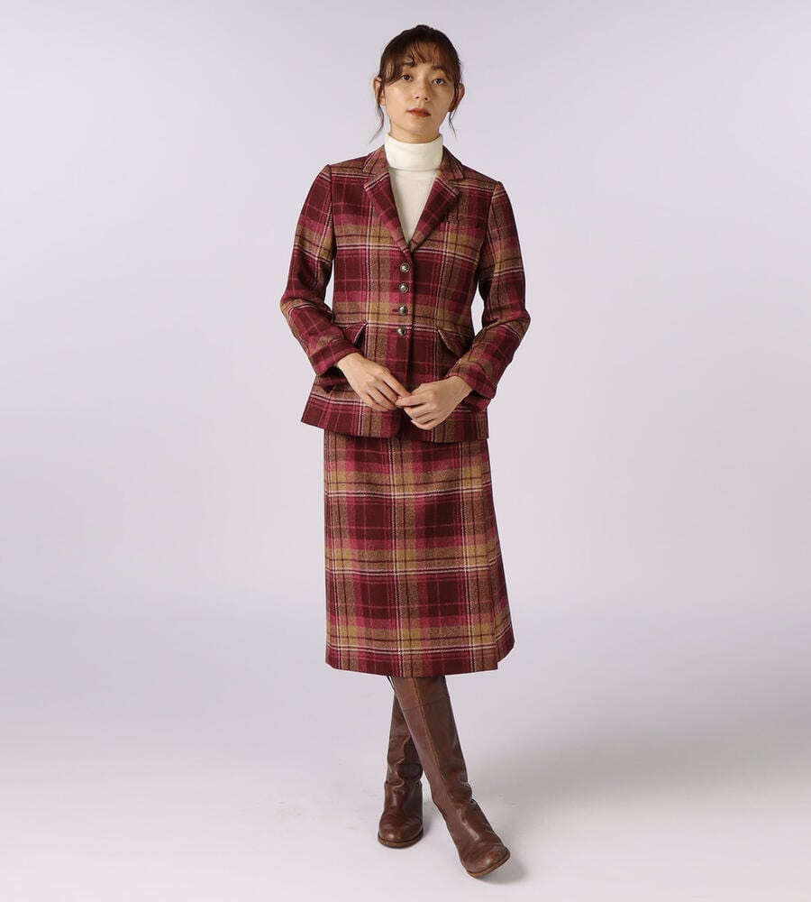 トラディショナルな印象のチェック柄ジャケット。存在感のある1枚なので、シンプルなコーディネートのアクセントとしてもお使いいただけます。インパクトのあるハッキングポケットやボタン位置など、乗馬ジャケットを思わせるディテールにも注目です。裏地には華やかなペイズリー柄をあしらうなど、見えない部分までこだわりを詰め込みました。