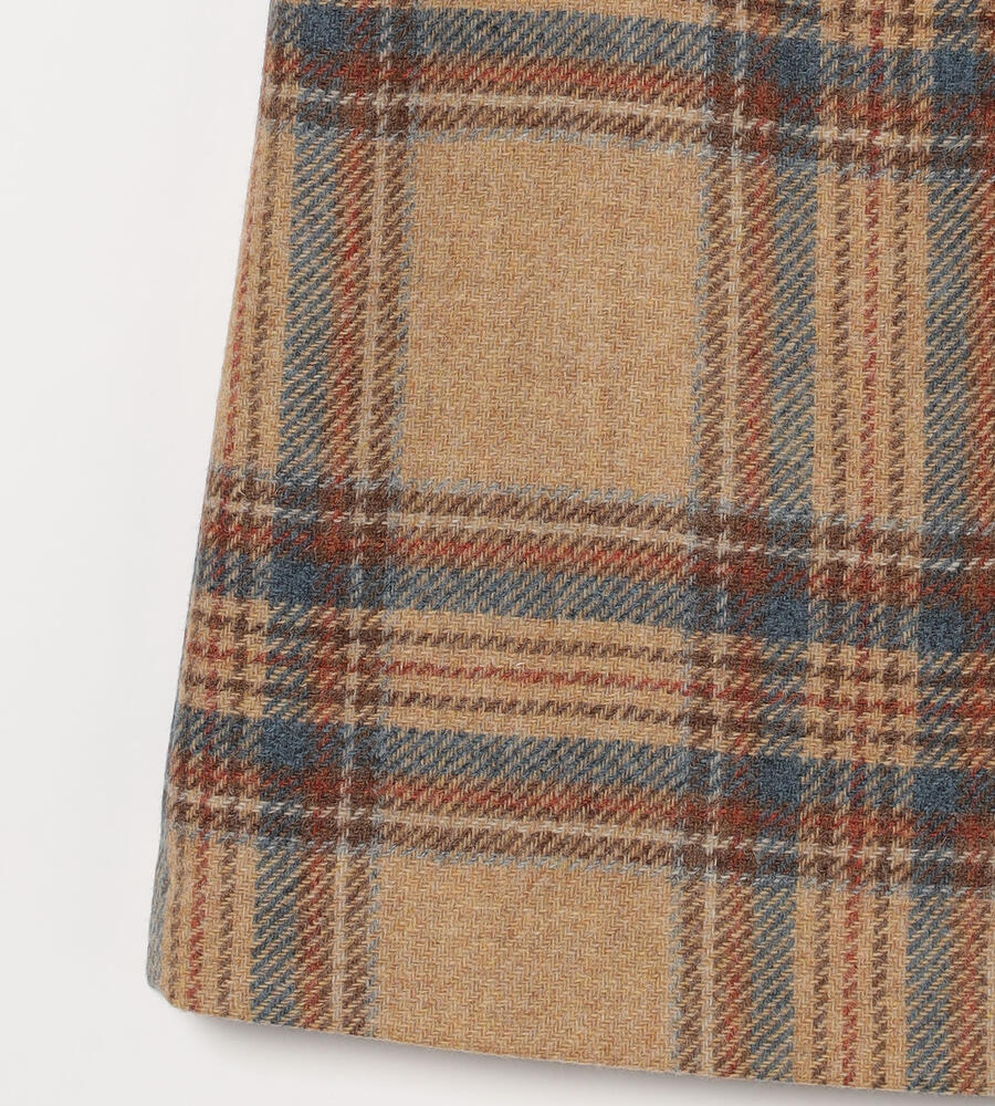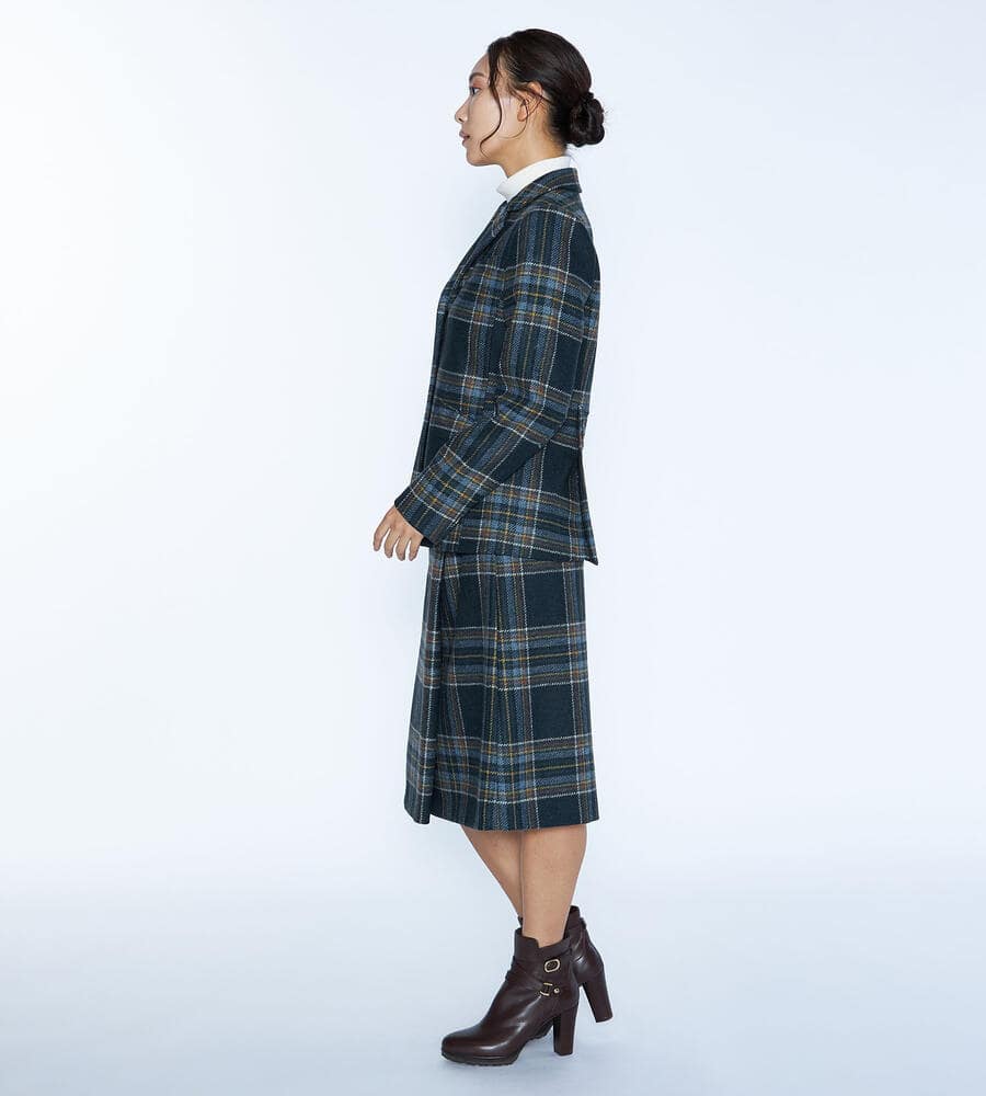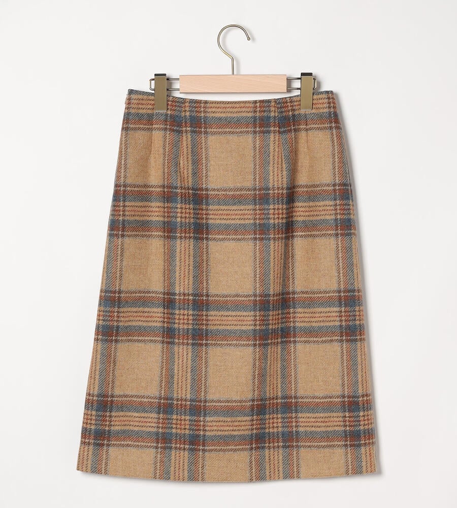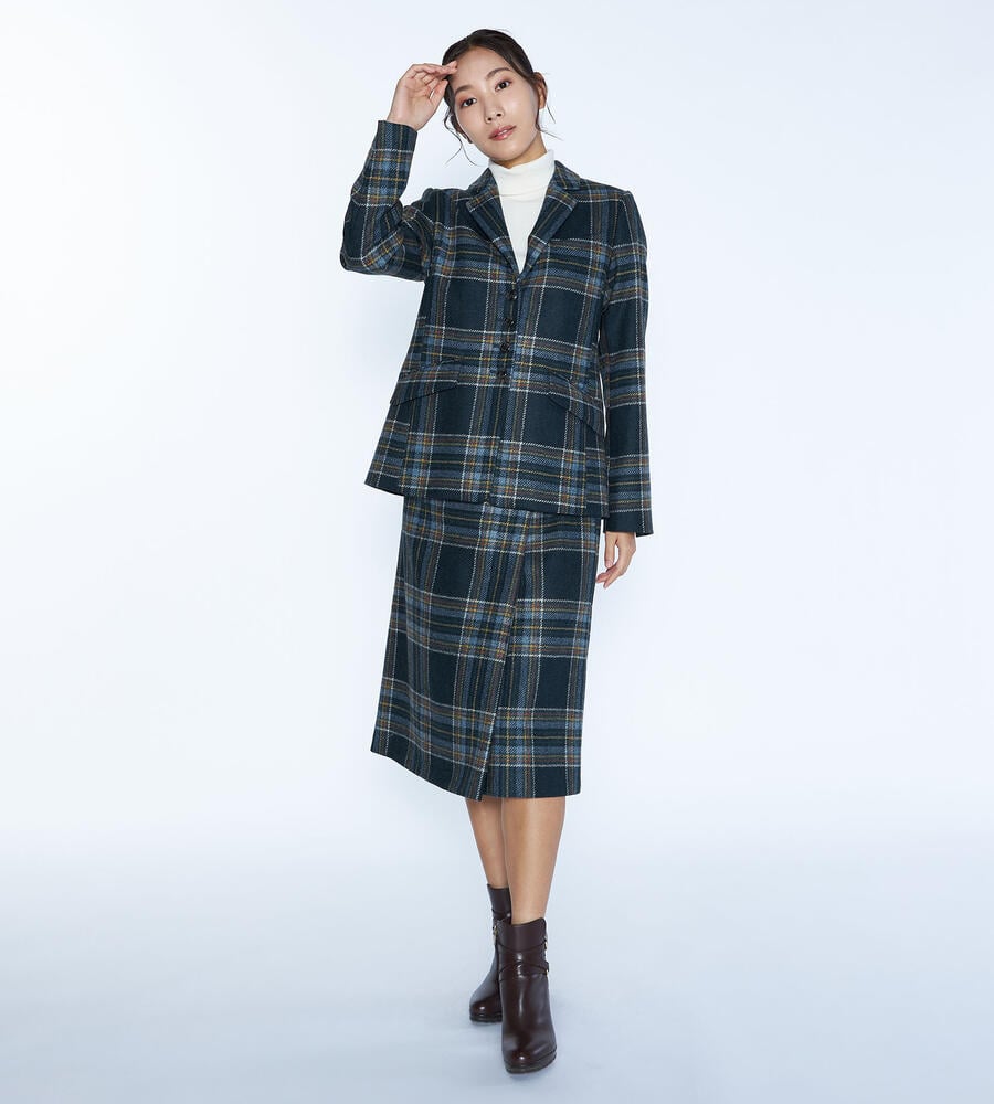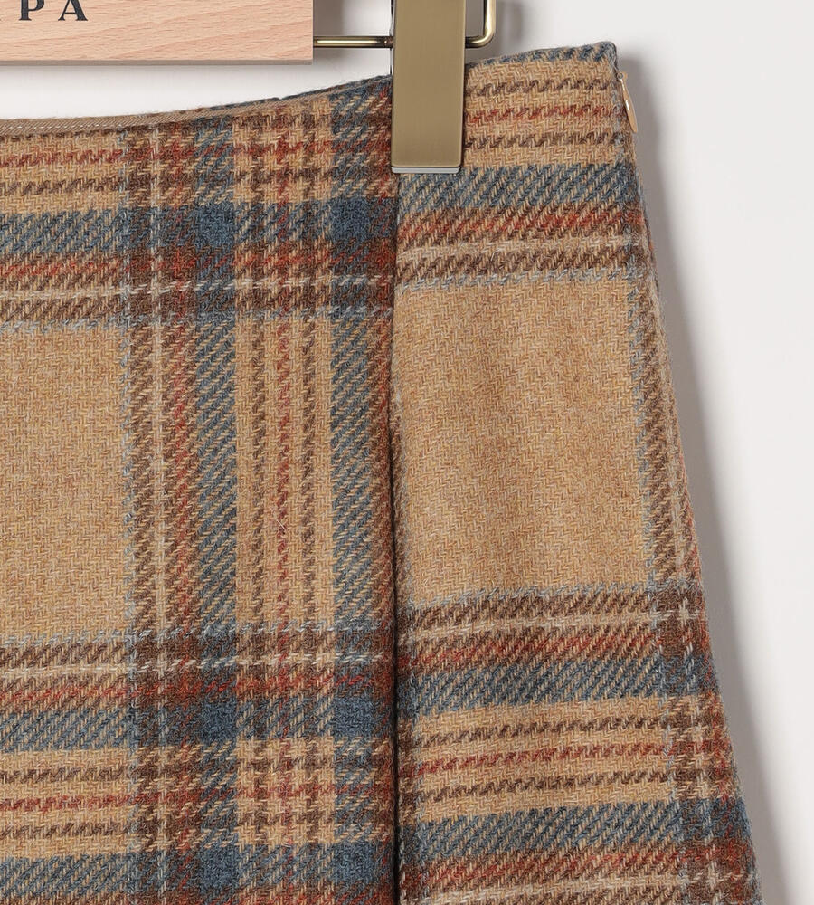 イギリス産の上質なウール素材を用いたスカート。ジェントルな空気感が漂うチェック柄を用いて、正統派の風格ある表情に仕上げています。フロントが重なって見えるラップ風の仕立て。膝が隠れる程度の着丈で、凛とした着こなしを楽しめます。同素材のジャケットを合わせたセットアップスタイルもおすすめです。
