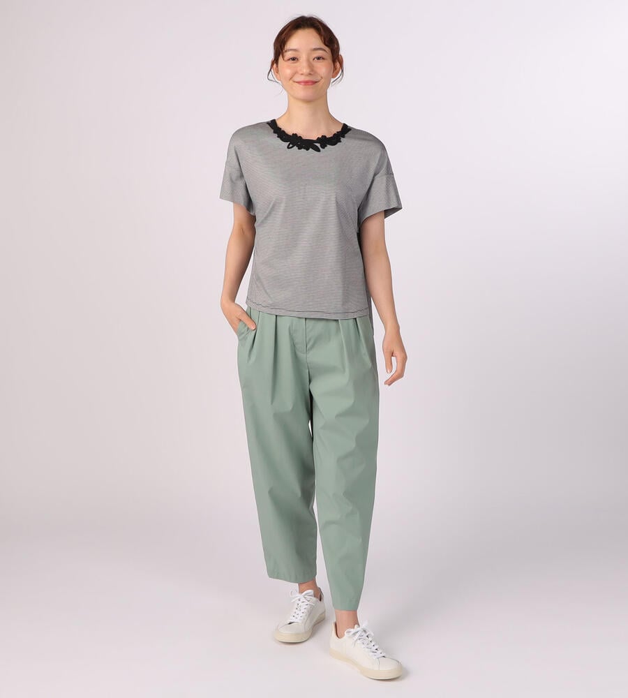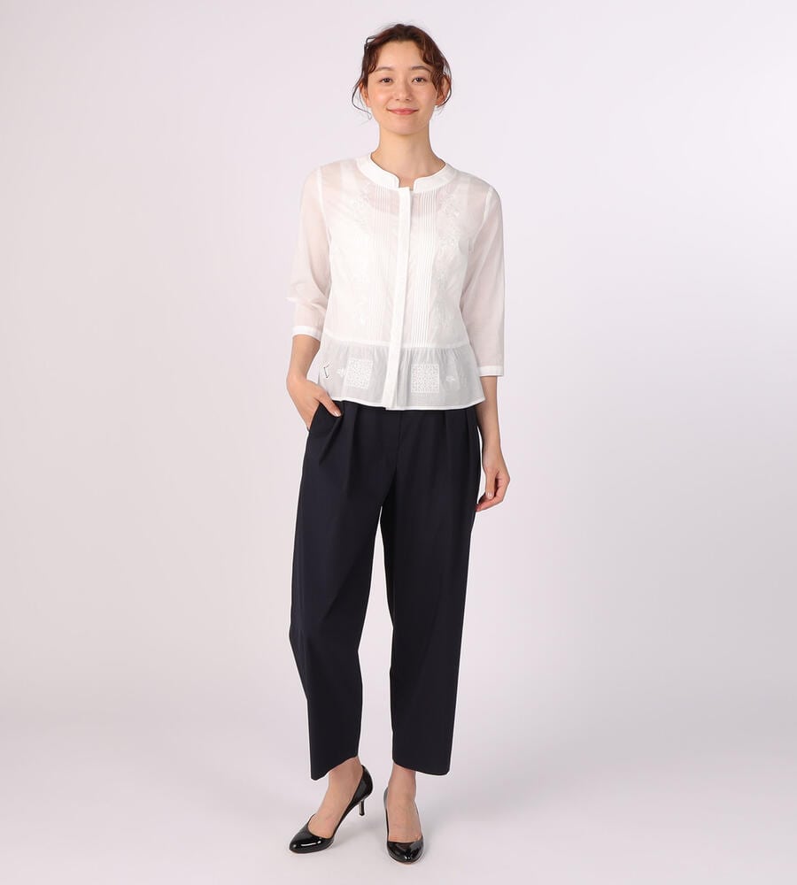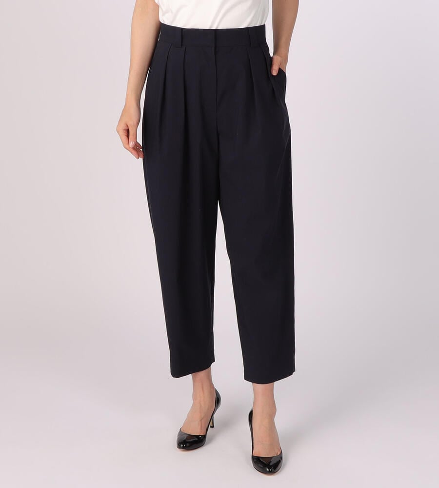 上品な表情のタイプライター生地で仕立てた1着。マニッシュなセミワイドのシルエットは、腰まわりにタックを入れ立体的にすることで洗練された印象に仕上げました。きれい感のあるデザインなので、パンプスとも相性が良く、きれい系コーデにも活躍してくれるアイテムとなっています。