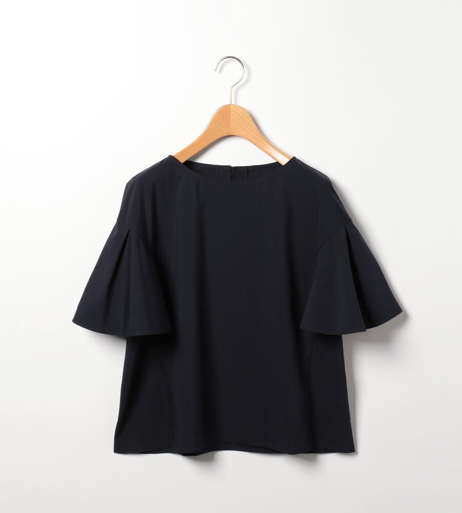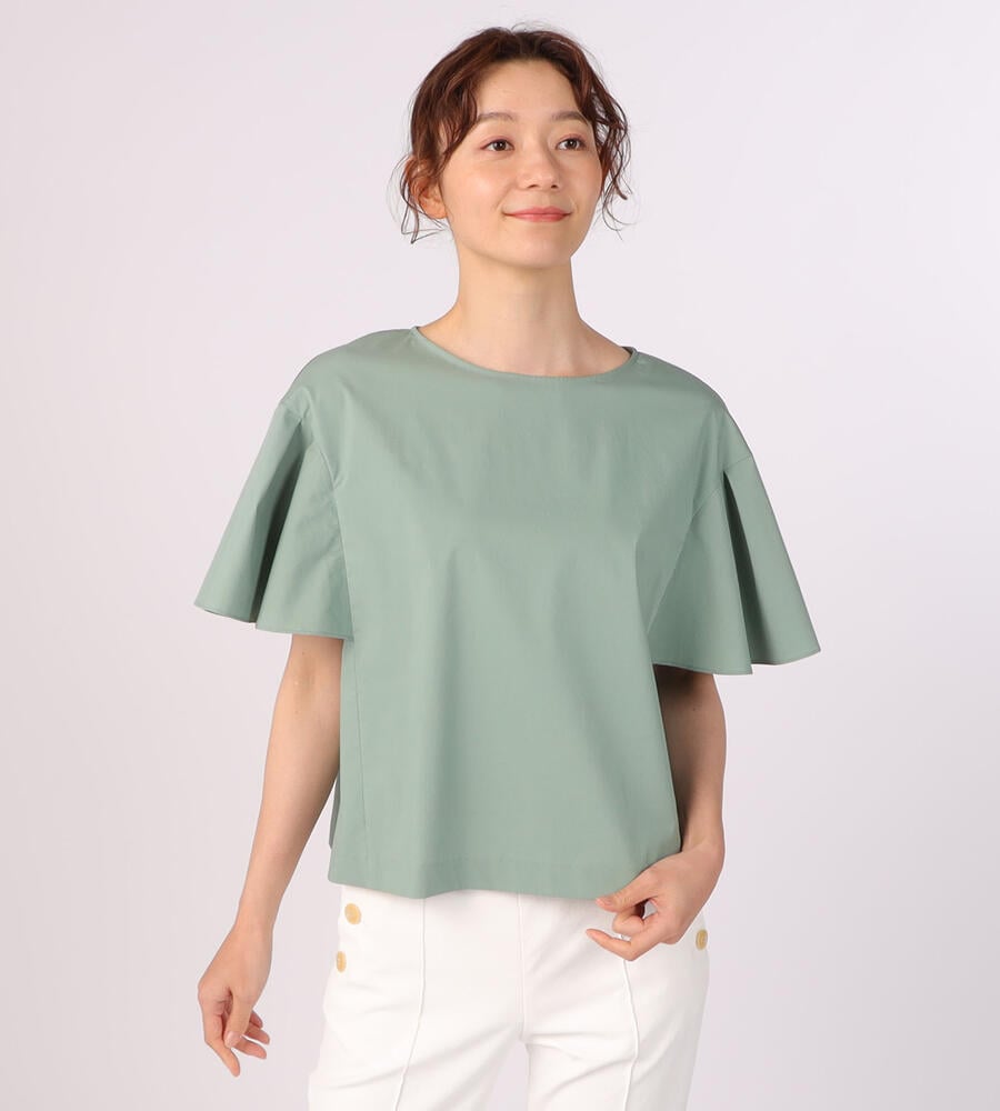 特有のハリ感が上品な佇まいのタイプライターブラウス。ボディラインをカバーしてくれるゆったりとしたシルエットは、どんなボトムともバランス良く合わせることができるのも魅力です。シンプルなワンカラーに、大振りのフリル袖が映える華やかな1枚に仕上がっています。カジュアルからきれいめまで幅広いコーディネートも可能です。