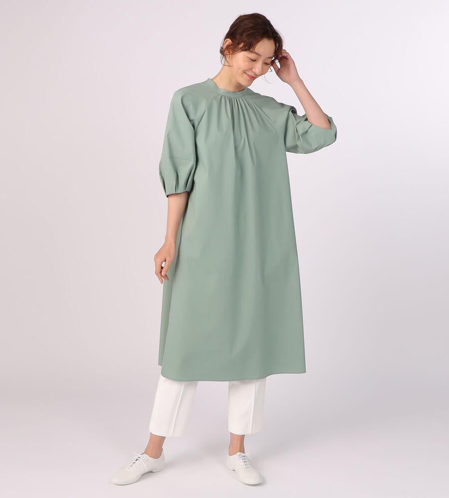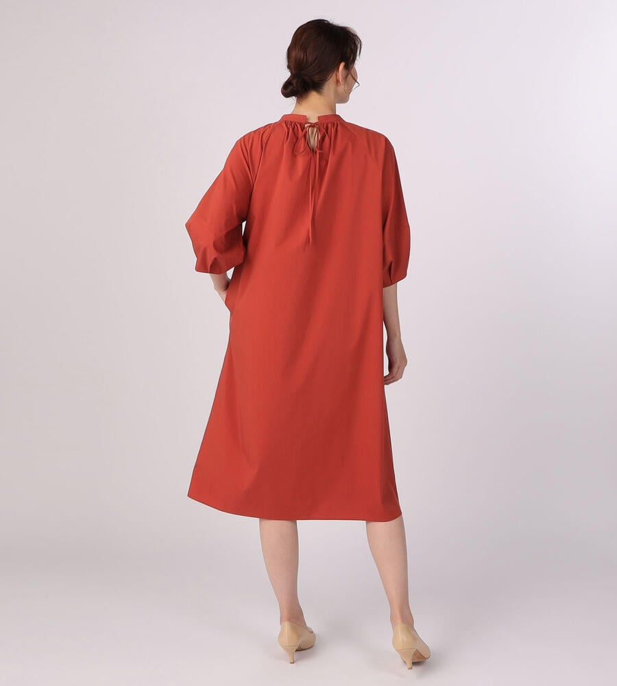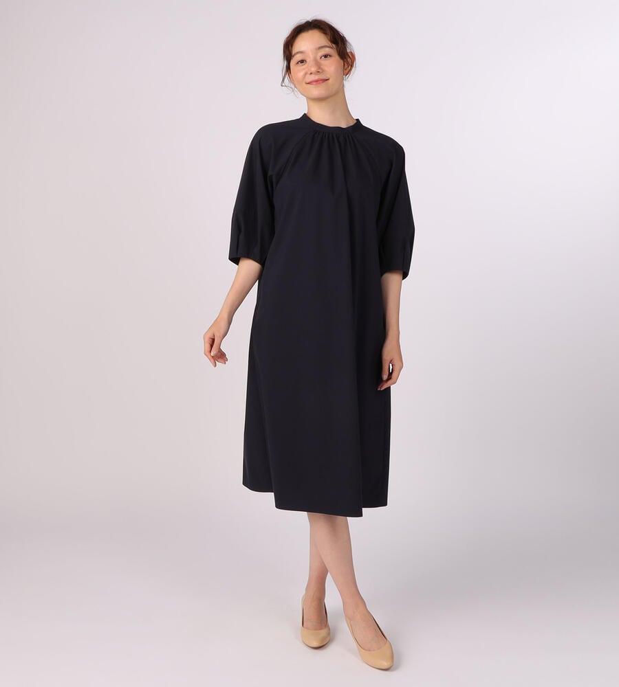 特有のハリ感で清楚な印象に仕上がる、タイプライター生地のワンピース。ボディラインをすっぽりとカバーしてくれる空気を含んだようなシルエットが魅力です。バルーン調の袖やギャザーのあしらいなど、女性らしさを演出するディテールにもこだわっておつくりしました。
