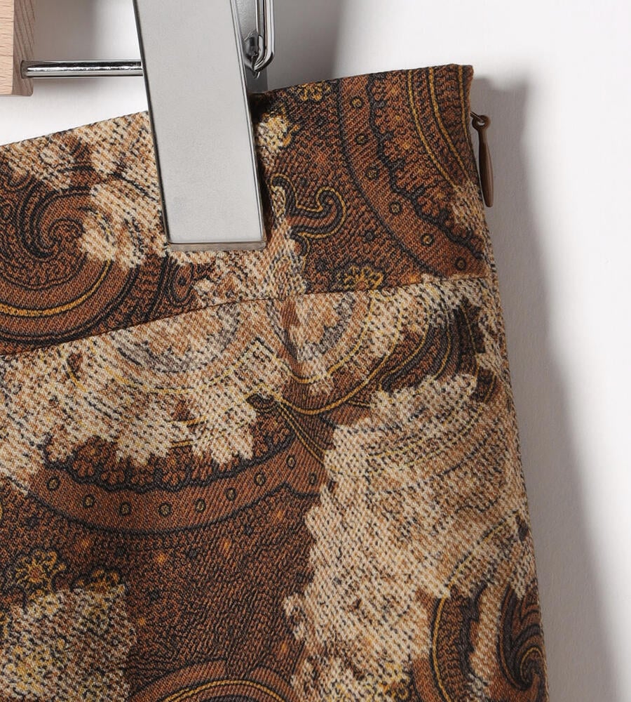 繊細で美しいイタリア製生地を採用した、着こなしに華やぎを与えるラッティシャドースカート。ペイズリープリントをベースに異なるプリントを重ねた存在感溢れるデザインがラグジュアリーなムードに。優美に広がるフレアシルエットからエレガントなムード香るアイテムです。