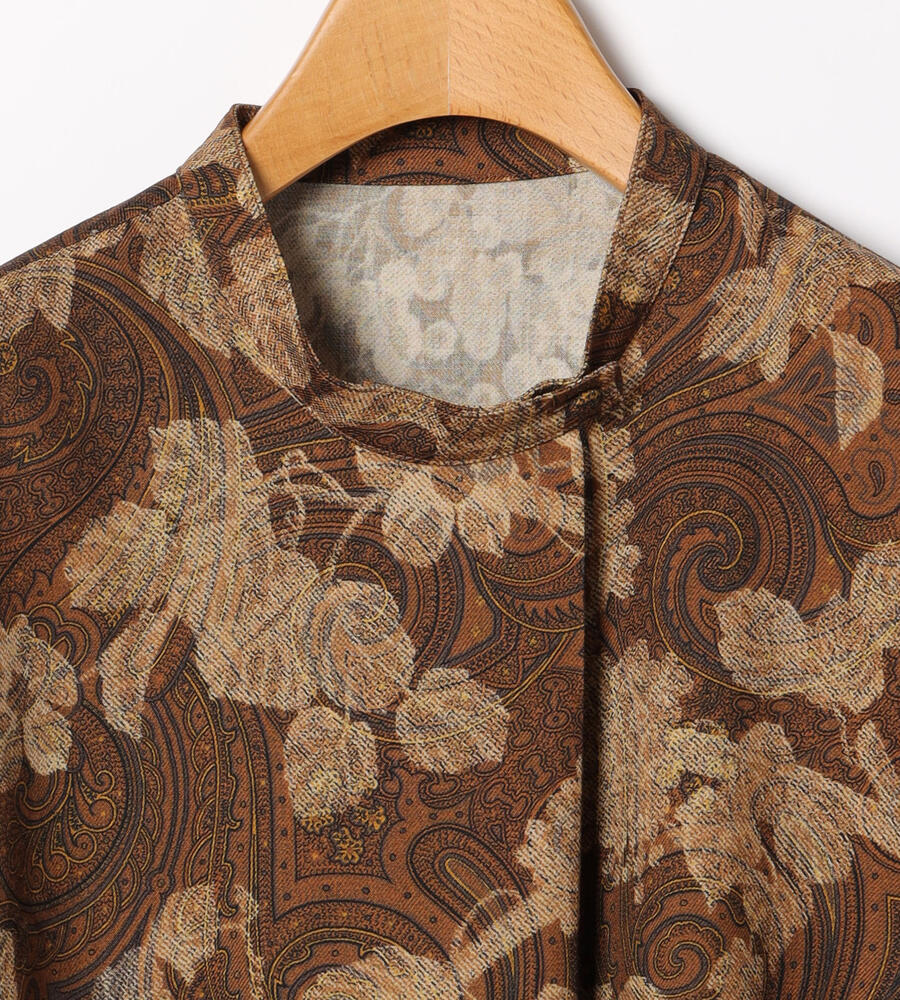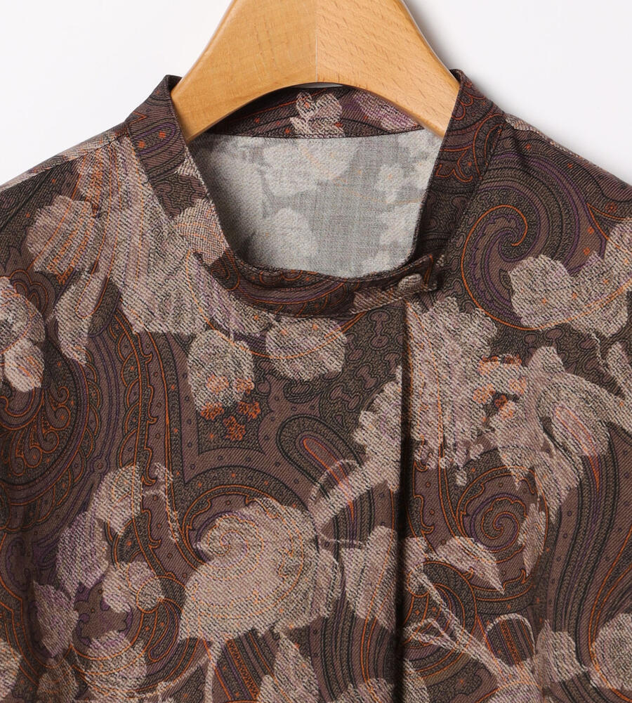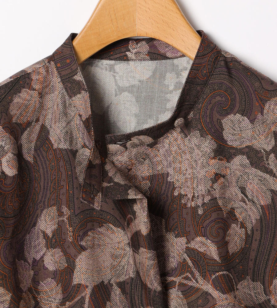ペイズリープリントをベースに異なるプリントを重ねた存在感溢れるデザインが、着こなしに華やぎを与えるラッティシャドーブラウス。首もとはスタンドカラー×ボタン仕様。タックをたたむことで見頃にゆとりをプラスしています。毛100%のイタリア製生地で仕立てたアイテムです。