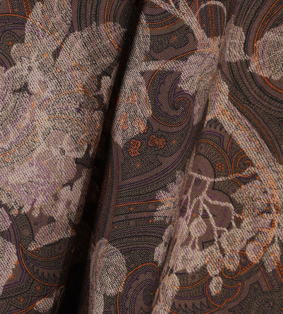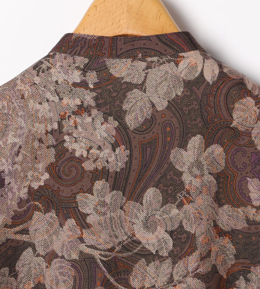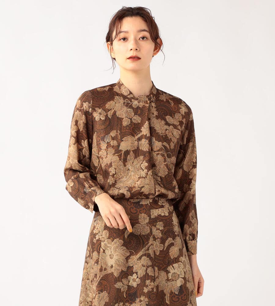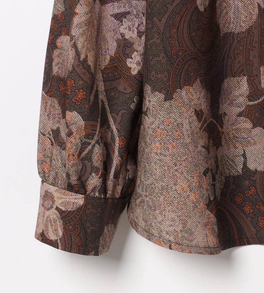 ペイズリープリントをベースに異なるプリントを重ねた存在感溢れるデザインが、着こなしに華やぎを与えるラッティシャドーブラウス。首もとはスタンドカラー×ボタン仕様。タックをたたむことで見頃にゆとりをプラスしています。毛100%のイタリア製生地で仕立てたアイテムです。