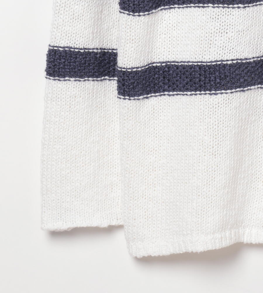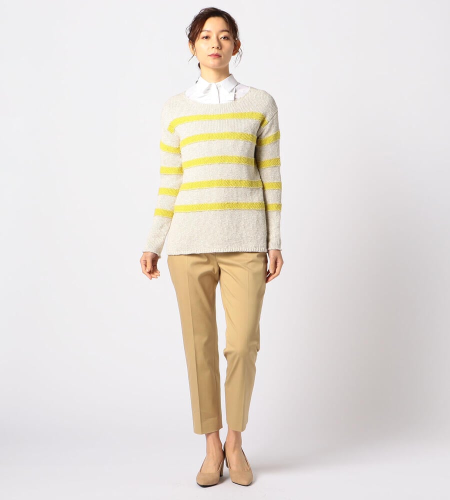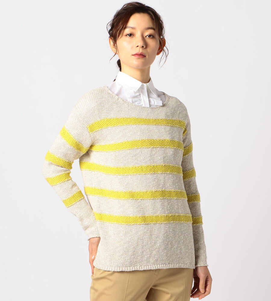 マリンなムード漂うボーダー柄のクルーネックニットプルオーバー。コットンと麻をブレンドした素材でざっくりと編み上げ、スプリングシーズンにふさわしい軽やかな表情に仕上げています。ゆったりとしたシルエットが心地良く、インにシャツを合わせたレイヤードスタイルもおすすめです。