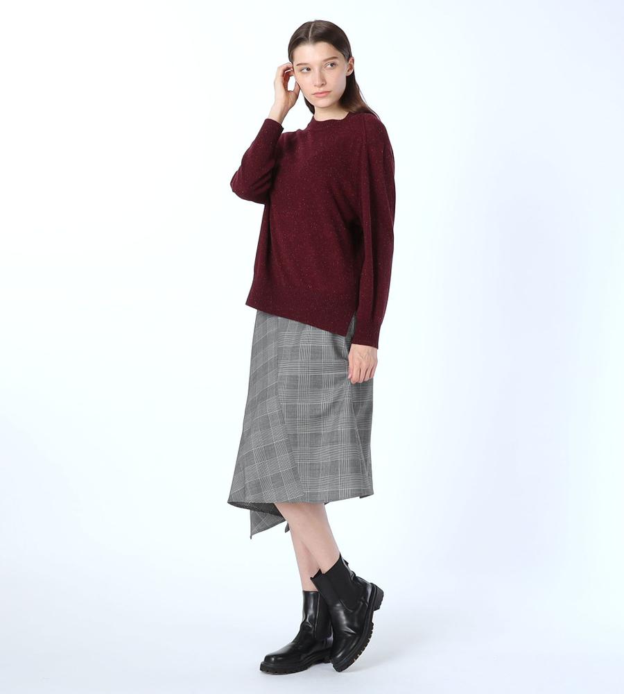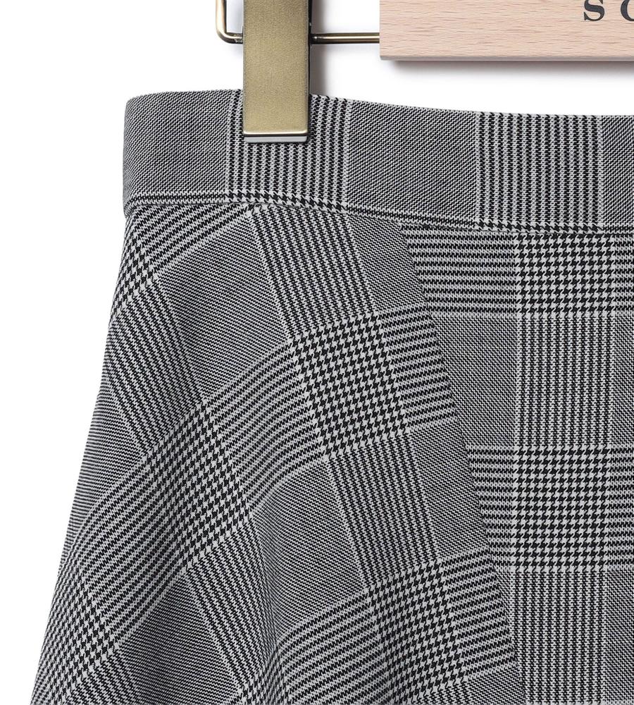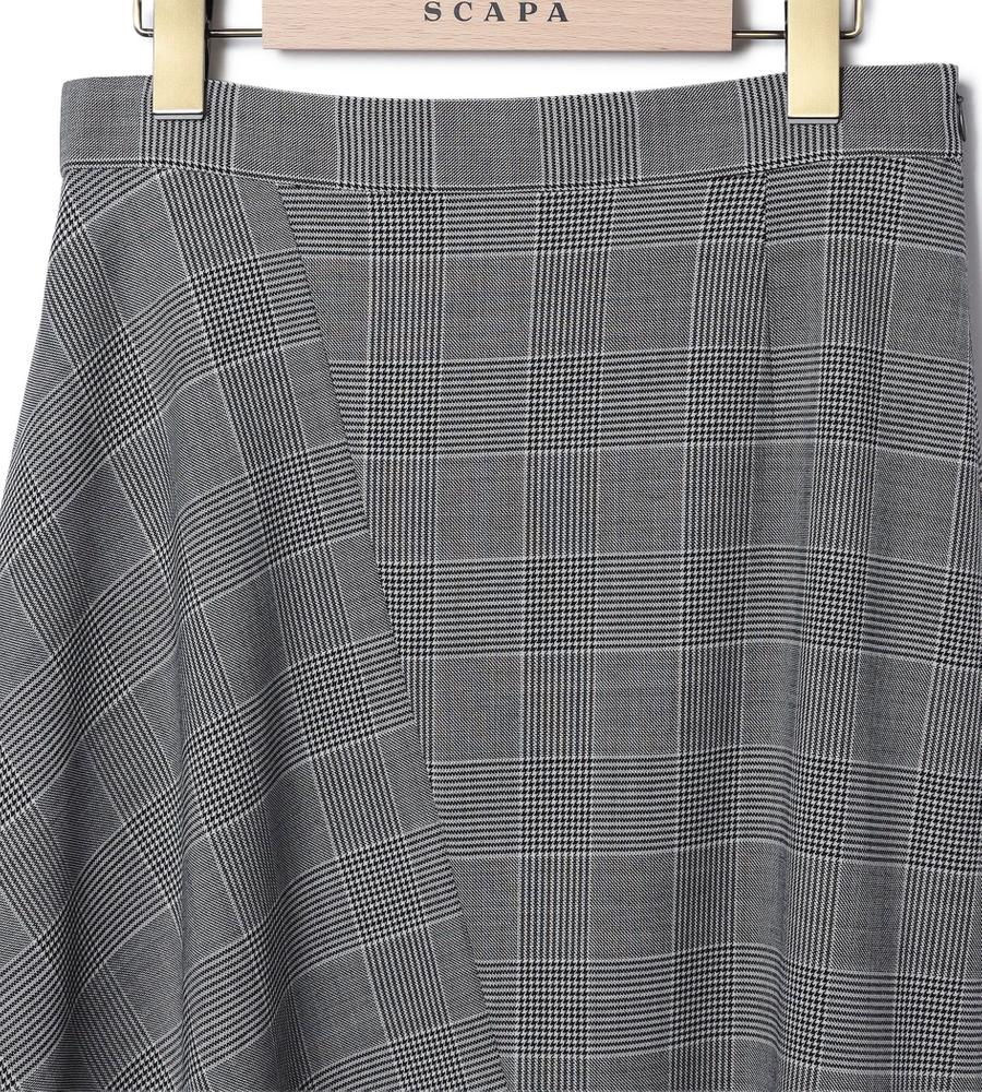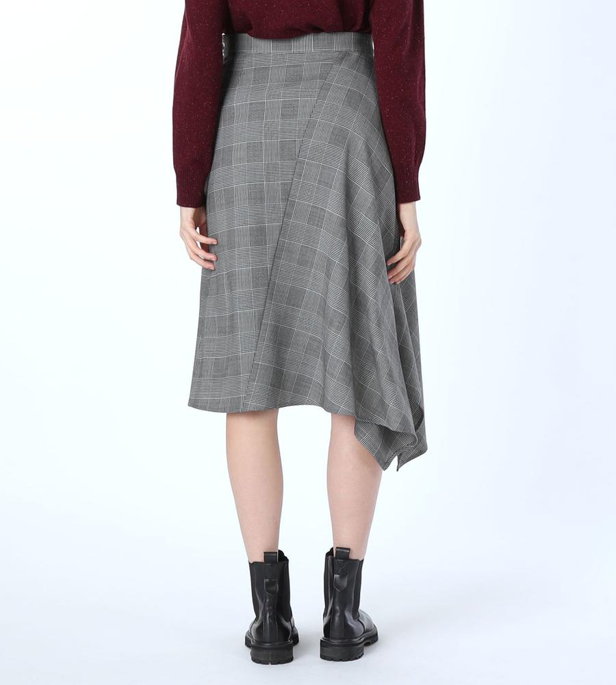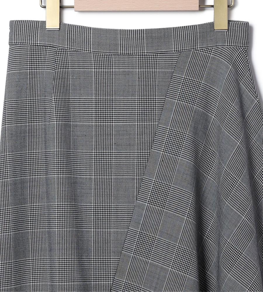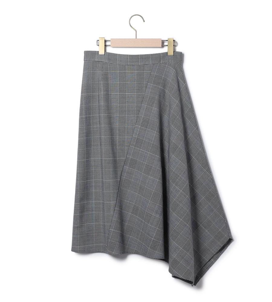 大人っぽくクラシカルな雰囲気のグレンチェック柄のスカート。アシンメトリーなシルエットでモード感が加わっており、ひと味違ったコーディネートを楽しめます。動いた際に現れる揺れ感やドレープがエレガンスをプラス。ひざが隠れて上品に穿きこなせ、普段のカジュアルからちょっとしたお出かけまで幅広く活用できます。