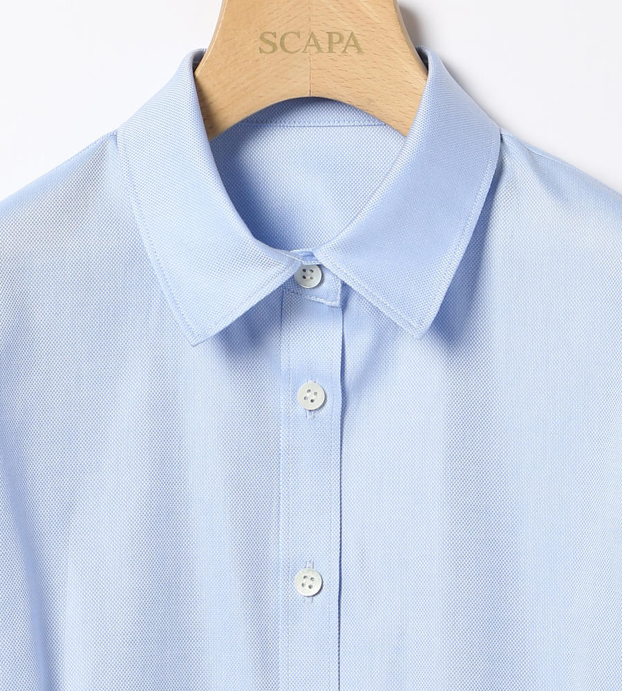 品の良い光沢と滑らかな素材感から洗練された雰囲気が漂うブラウスです。身頃にダーツをほどこしすっきりとしたシルエットに仕上げています。ベーシックに着まわせるシンプルなデザインはジャケットイン、カーディガンやベストのインナーとしても活躍するアイテムです。