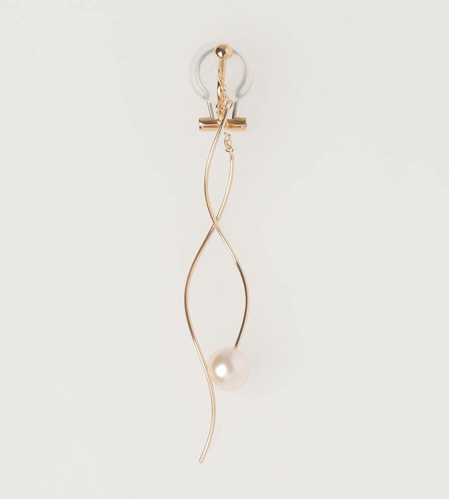 アメリカンピアスのような見え感を楽しめるクリップ式イヤリング。ウェーブを描く繊細なメタルバーに、大粒のパールをワンポイントで添えました。上品な華やぎがあり、表情を明るく見せてくれます。きれいめな通勤スタイルはもちろん、カジュアルな装いに合わせるのもおすすめです。