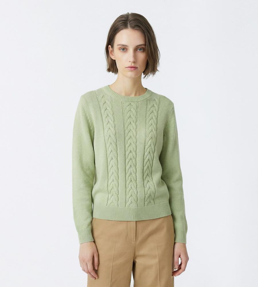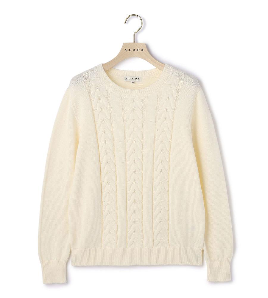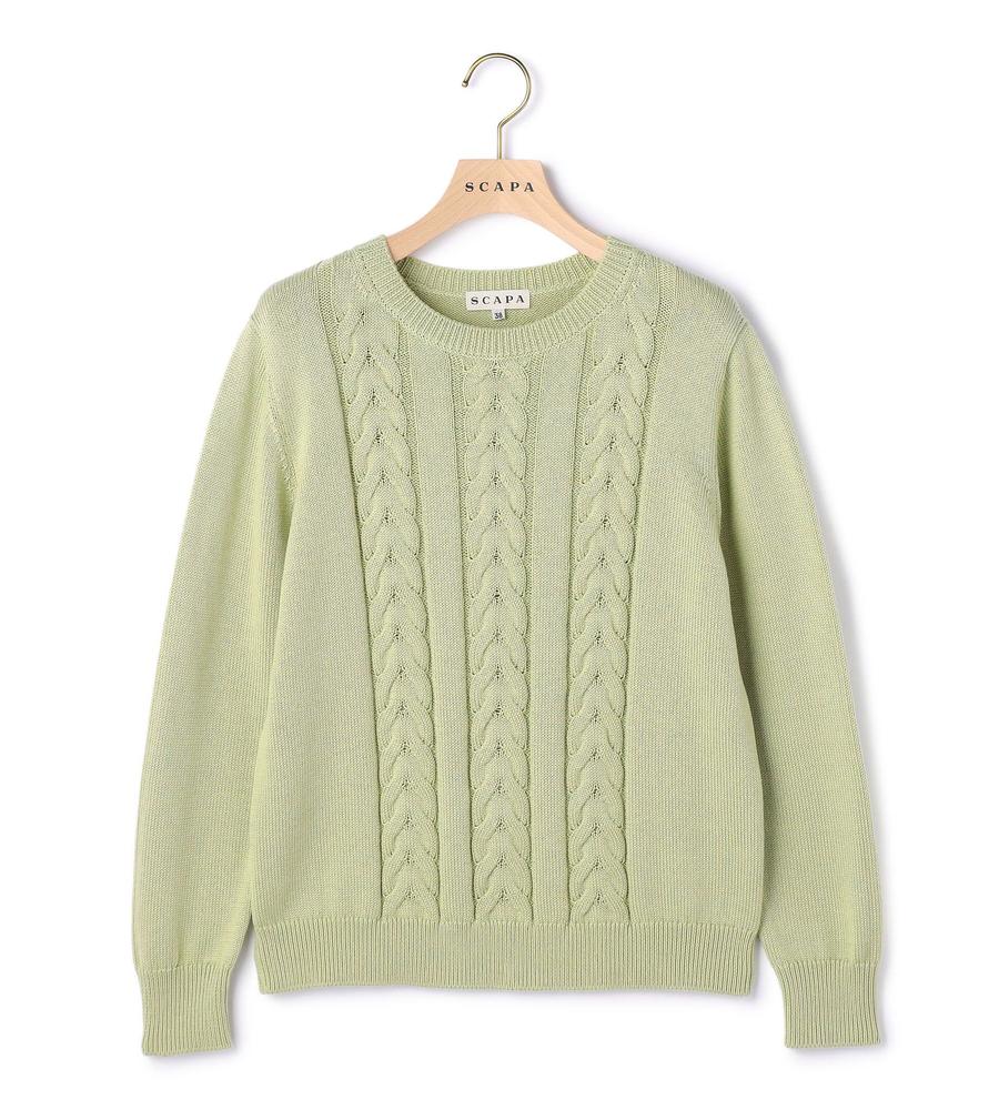 さらりとした質感で爽やかな着心地を味わうことができる、コットンニットプルオーバー。フロントにあしらったケーブル編みが、着こなしのポイントになります。シンプルで飽きのこないニットは、インナーやスカーフなどで彩りを添えた着こなしもおすすめ。ご自宅で手洗いが可能なウォッシャブル仕様も魅力です。