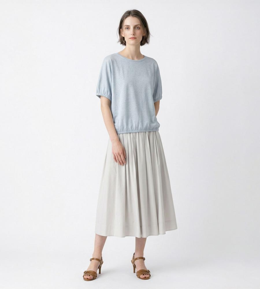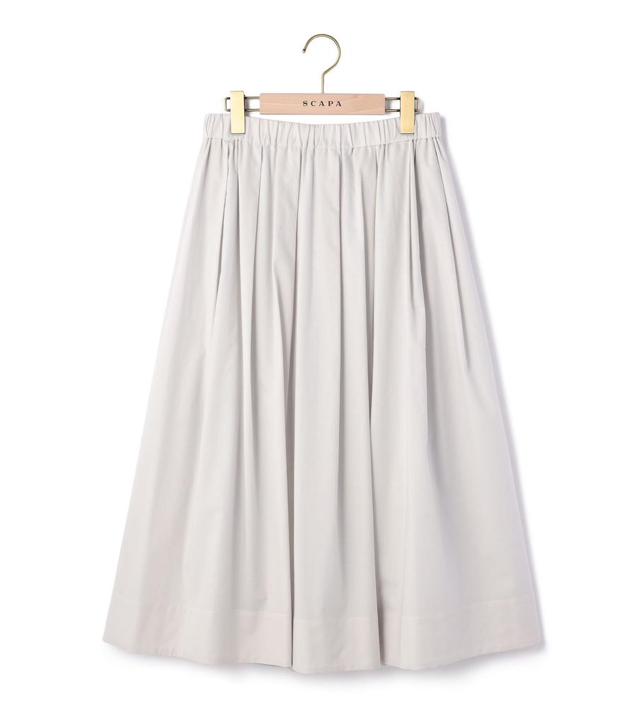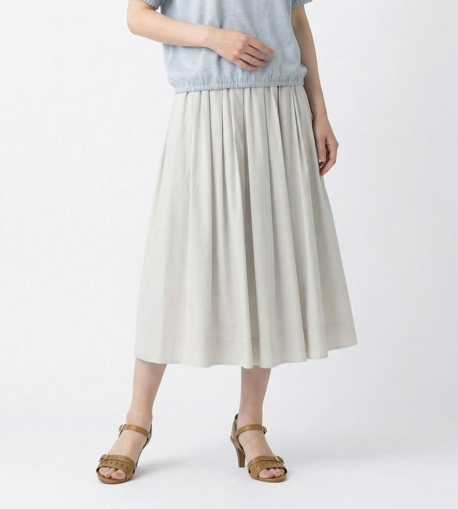 これからの季節にぴったりな、コットンローン仕立てのスカートです。素材の持つ適度なハリ感を生かしたタックギャザーがポイント、吸汗性や速乾性にも優れ汗をかいても快適に過ごせます。総ゴム仕様のウエストでお腹まわりも締め付けずに楽ちん、同素材のブラウスとセットアップでそろえるのもおすすめです。