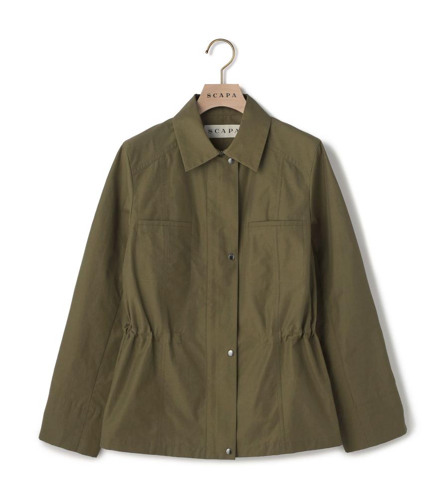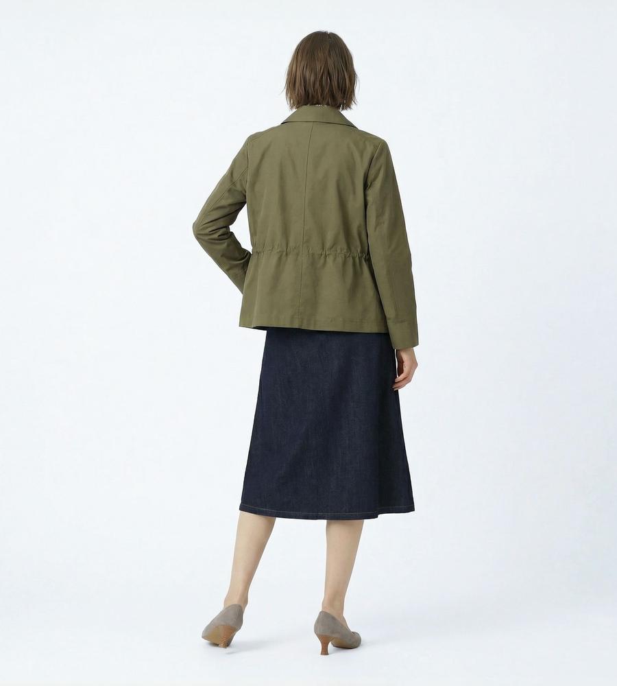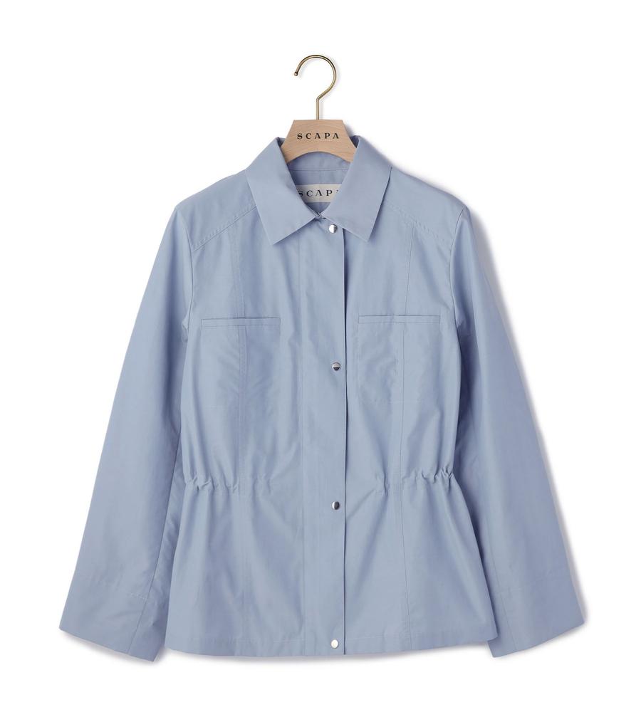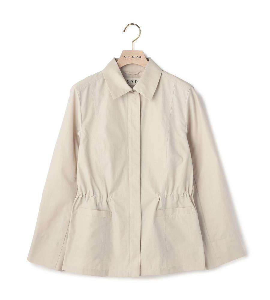 さらりとした肌ざわりが心地良い綿混素材のジャケット。端整な衿つきのデザインで、旬度の高い着こなしに。ウエストにギャザーが入っていて、メリハリのあるシルエットに仕上がるのもポイントです。
