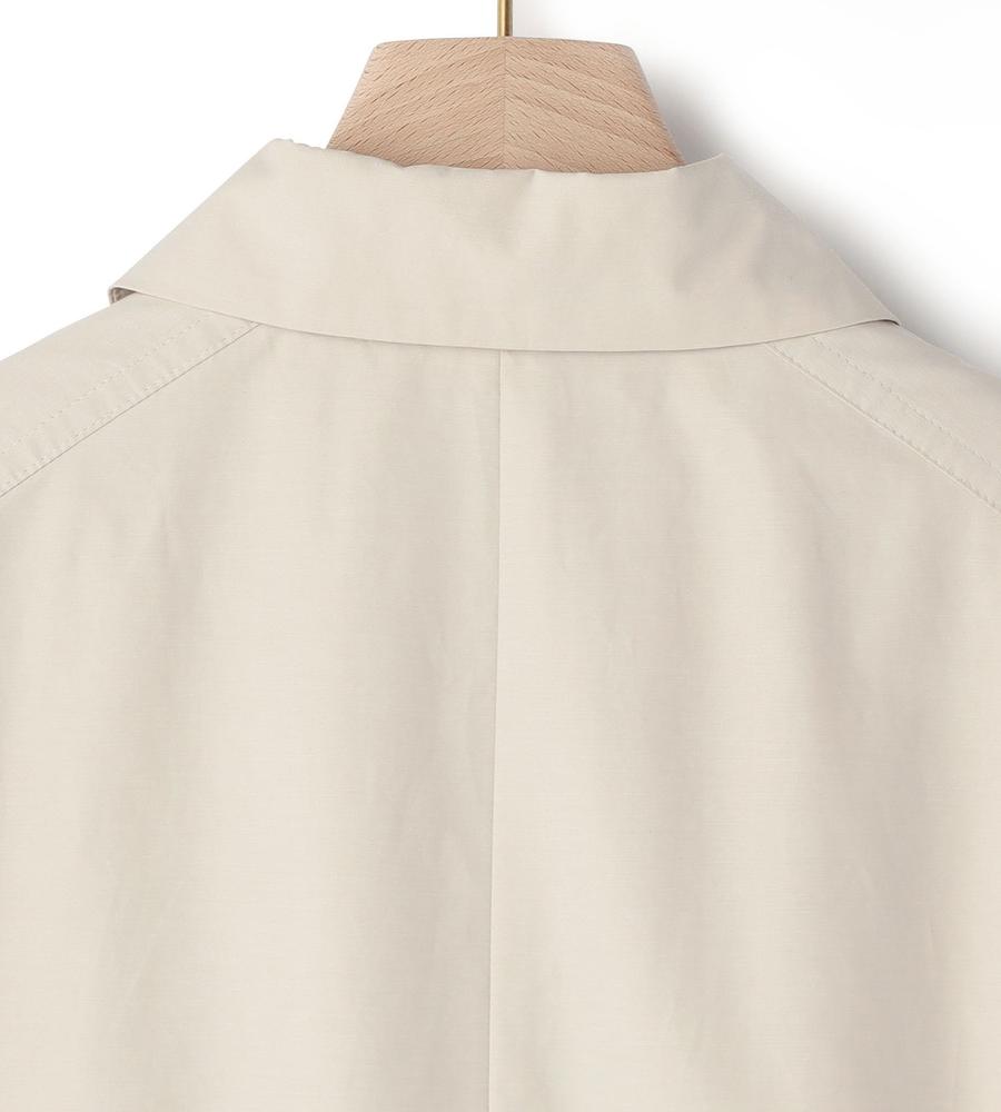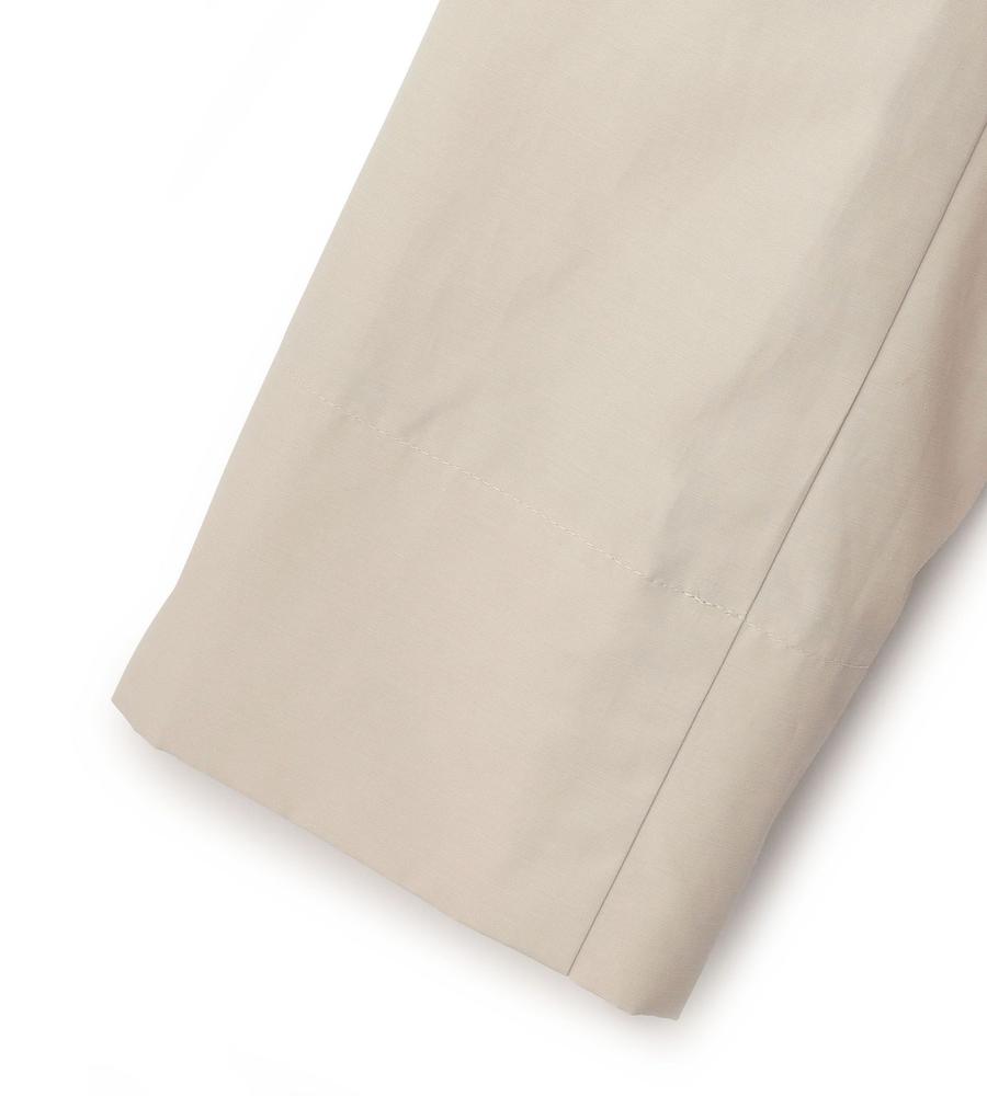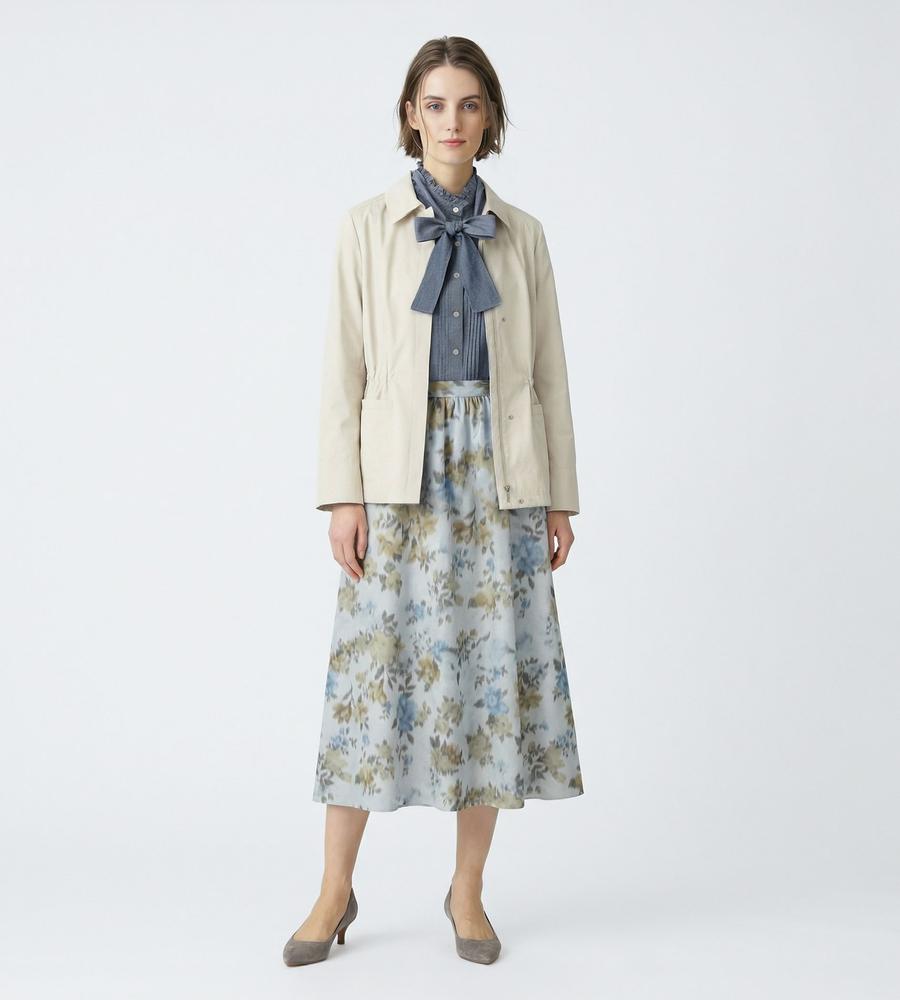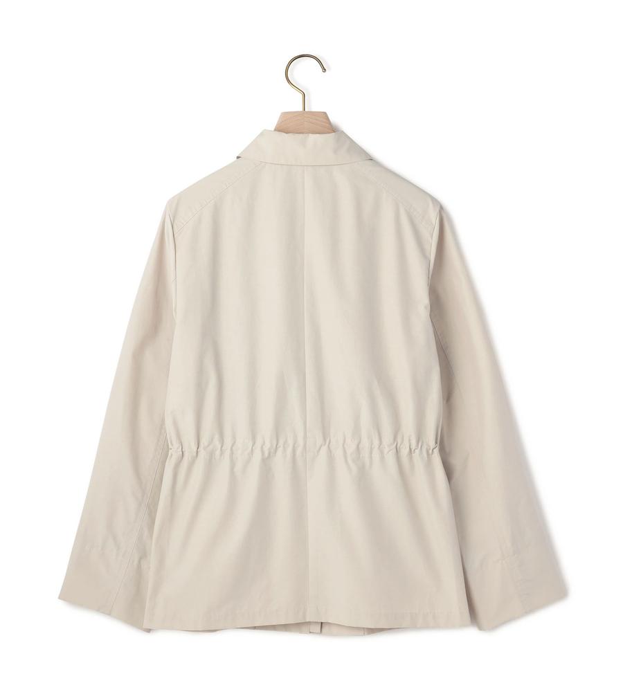 さらりとした肌ざわりが心地良い綿混素材のジャケット。端整な衿つきのデザインで、旬度の高い着こなしに。ウエストにギャザーが入っていて、メリハリのあるシルエットに仕上がるのもポイントです。