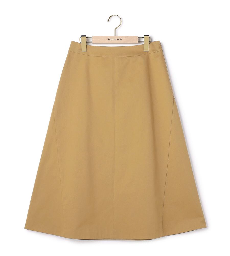 ハリのある肉厚なコットンチノ素材で仕立てた、フレアシルエットのスカートです。落ち着きのある膝下丈のスカートは、大人の女性におすすめ。コーディネート力に優れた、ベーシックなカラーがラインナップしています。プリントやチェック柄のトップス・アクセサリーともコーディネートをお楽しみいただけます。