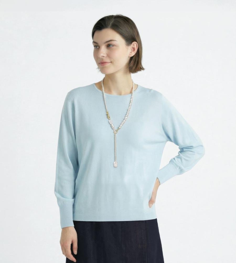 コットンハイゲージニットを使用した、優しくさらりとした肌ざわりのニットプルオーバー。上品な風合いとベーシックなシルエットで、着こなしのベースとしてデイリーに活躍します。