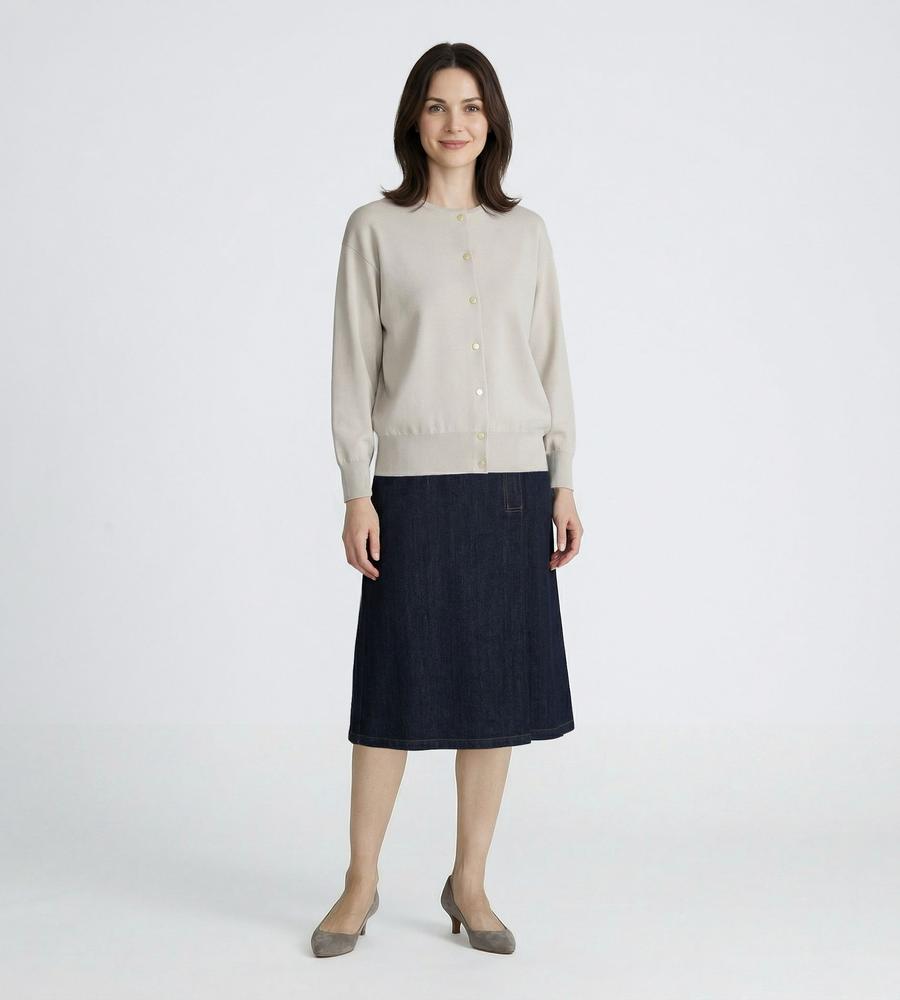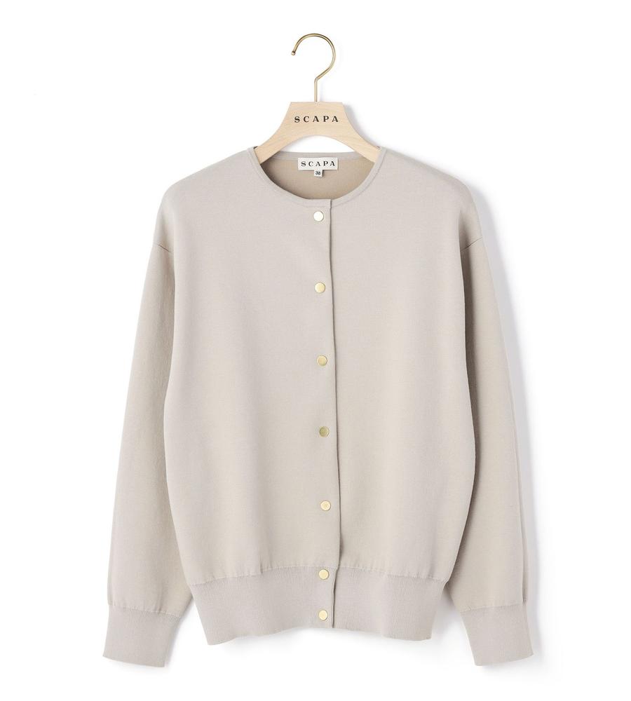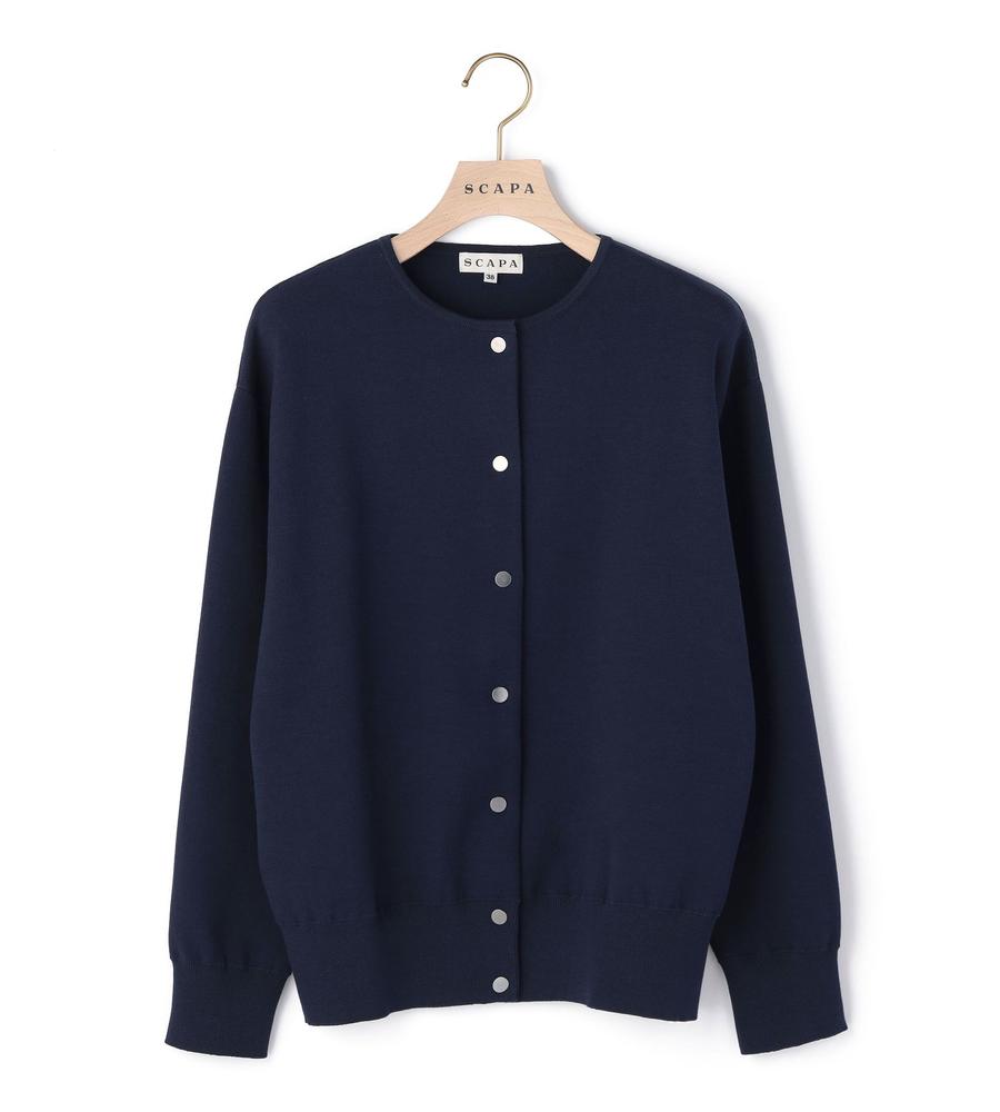 上品なハイゲージニットを使用したカーディガン。ほど良いゆとりのあるシルエットは、少し肌寒いときの羽織りにも最適です。クールなメタリックボタンが、着こなしを引き締めるポイントに。