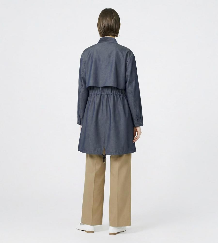 光沢感が美しいシャンブレー生地で仕立てたコートです。比翼仕立てにより、フロントのデザインをすっきり見せているのもポイント。フードはシーンに合わせて取り外しが可能です。軽やかに羽織れる素材感とミドル丈で、ロングシーズン着回ししていただけます。裾には、シルエットに変化を付けられるドローコードが付属。