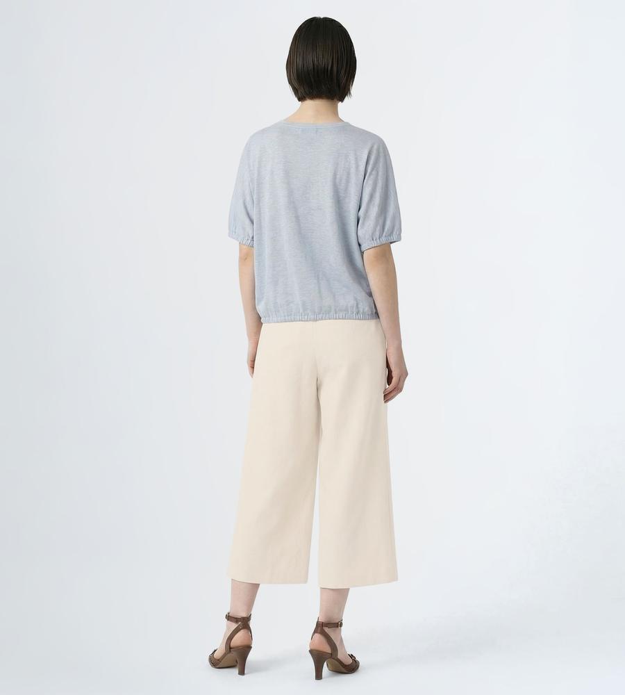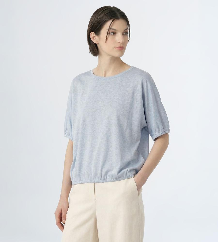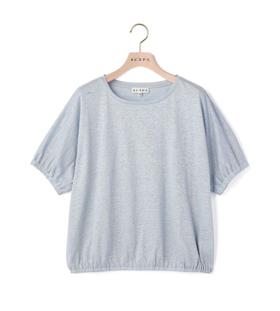 肌にサラッと心地よく着られる、リネン100%仕立てのプルオーバーカットソーです。生地にシルケット加工をほどこすことで、表面にシルクのような光沢感をプラスしました。シルエットに丸みを持たせる袖口と裾のギャザー使いもポイント、色違いで欲しくなる脱カジュアルな大人の半袖トップスです。
