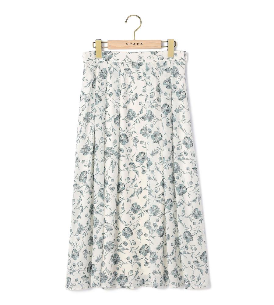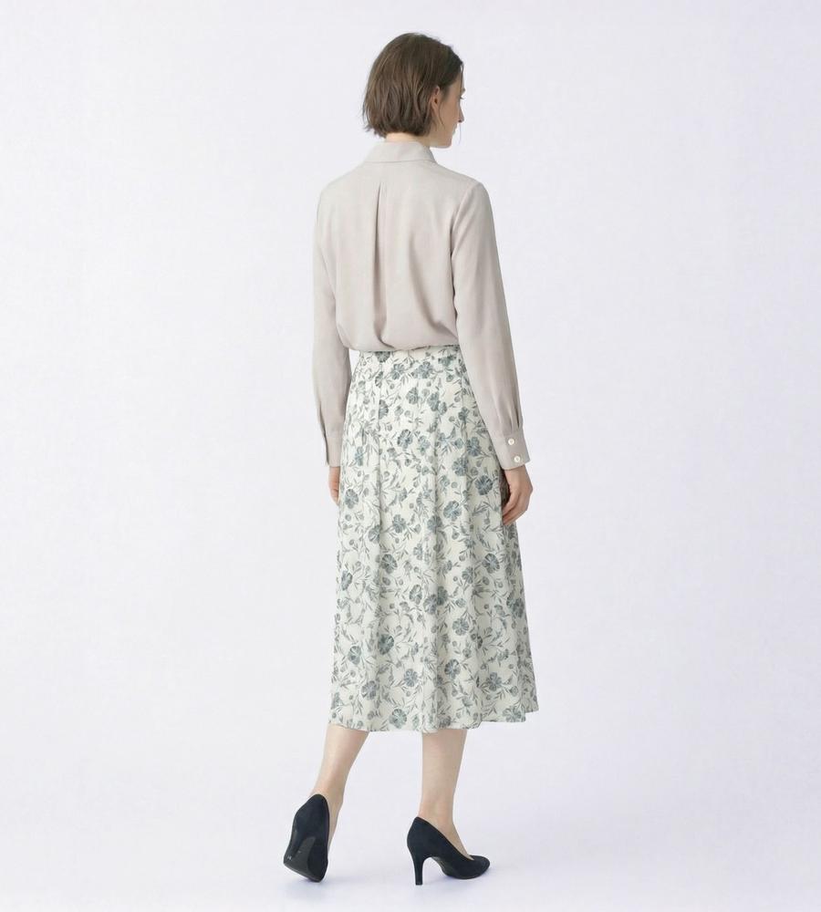 シックなフラワー柄が大人ムードのフレアスカート。タック使いによる立体的なシルエットも、上品に映えるポイントに。ドレッシーなデザインながら、軽快に着こなせるのも魅力です。