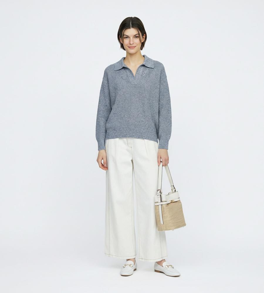 繊細な味わいを楽しめるミックスカラーのニット。トレンドの衿つきスキッパーデザインで、シンプルな装いも高感度な表情に。少しゆるりとしたシルエットで、着心地が楽なのも魅力です。