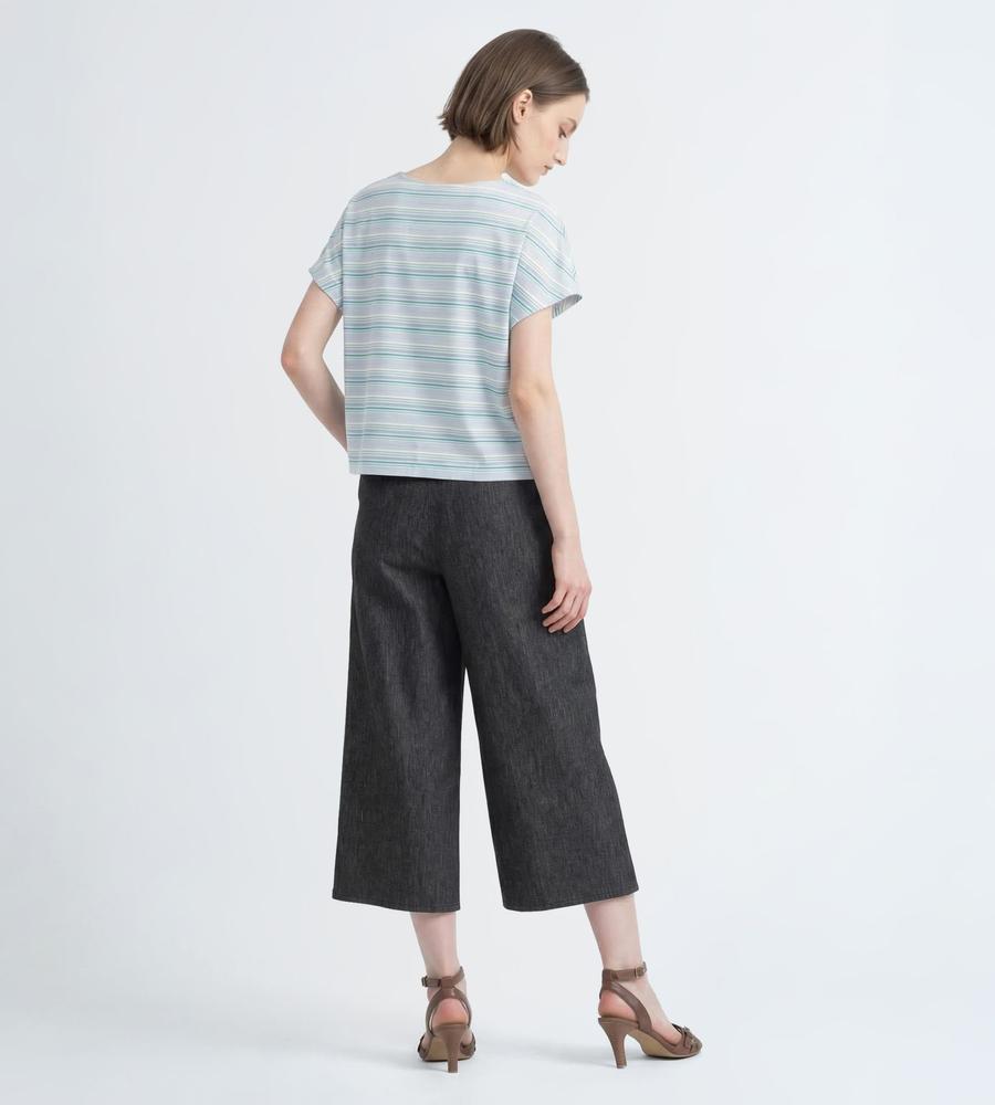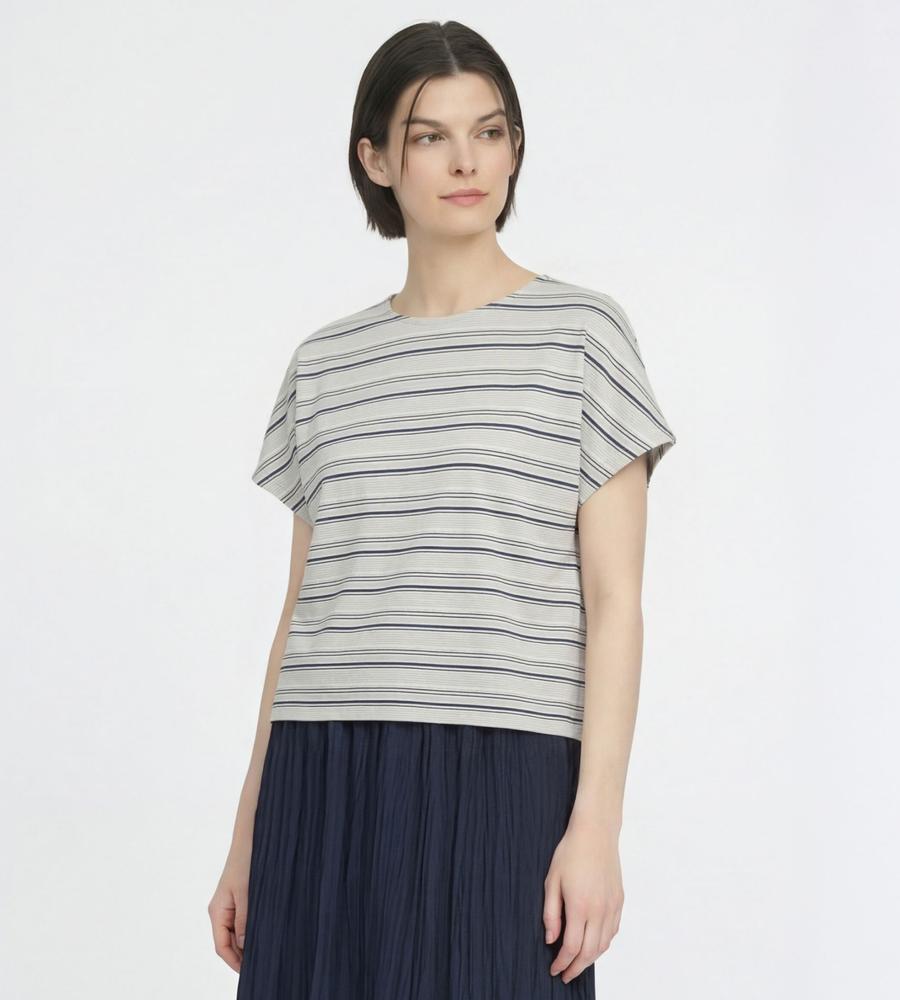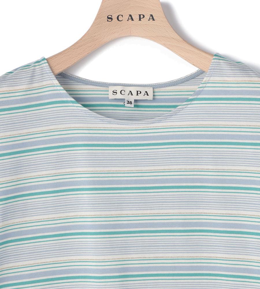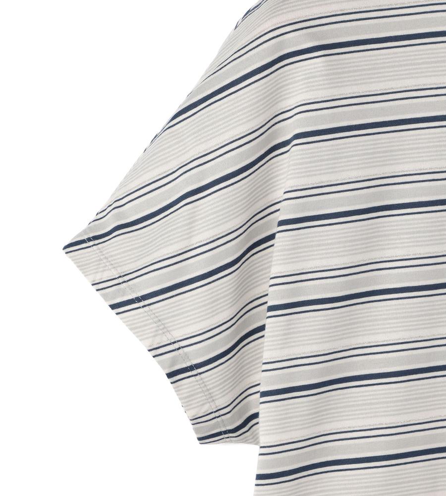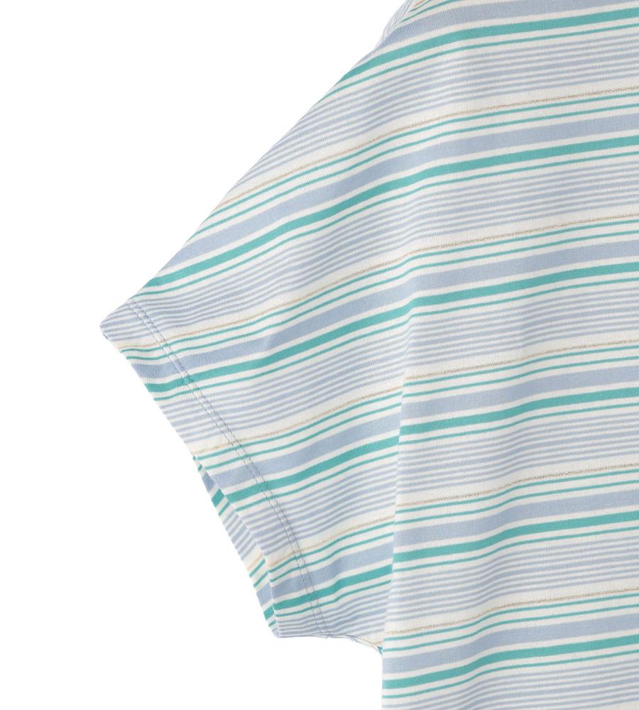 これからの季節にぴったりなマルチボーダー柄の半袖カットソーです。さりげないラメ混のボーダーラインに注目、袖に切り替えを作らないデザインが柄をきれいに見せてくれます。フレンチスリーブが脱カジュアル着こなしをかなえてくれるポイント、1枚着はもちろんインナーとしても存在感を発揮するアイテムです。