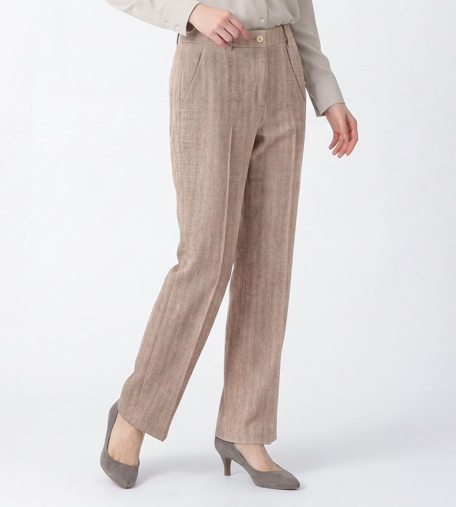 装いに繊細な奥行きを加えてくれるヘリンボーン柄入りのパンツ。つかず離れずのストレートシルエットは、ONのきれいめスタイルにも好相性。ストレッチ入りで動きやすいのもポイントです。