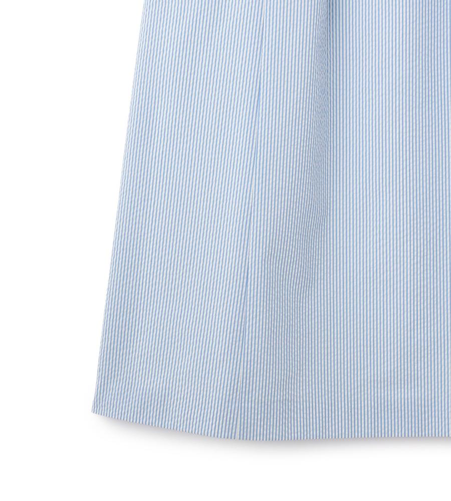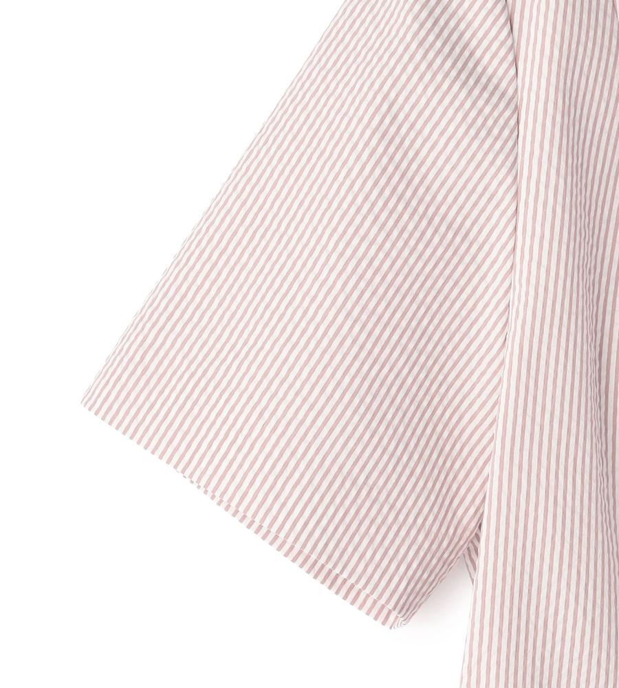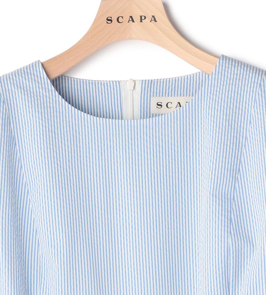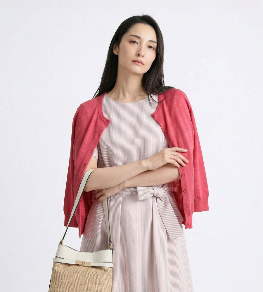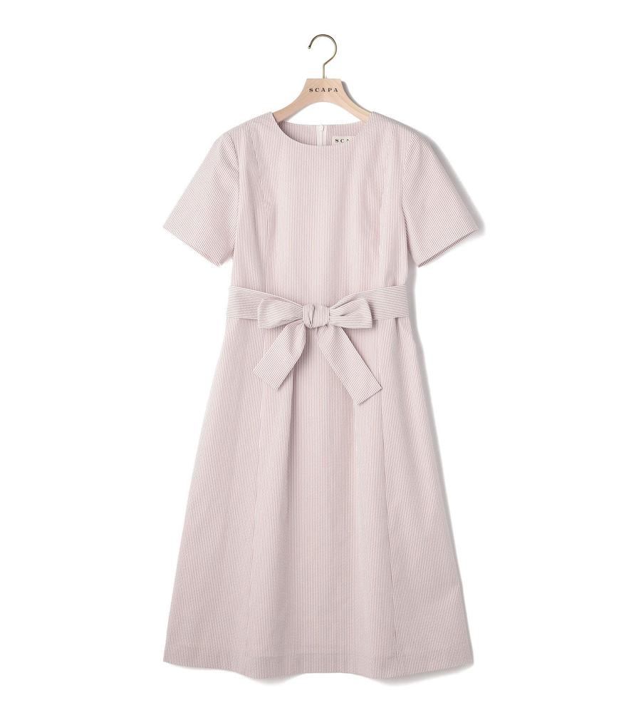 これからの季節にぴったり、爽やかなスタイリングをかなえてくれるサッカーストライプ柄のワンピースです。ほど良いハリのある素材とくびれコンシャスなリボンベルトが、女性らしいメリハリのあるシルエットを作ります。カーディガンやかごバッグをあわせたリゾートライクな着こなしがおすすめです。