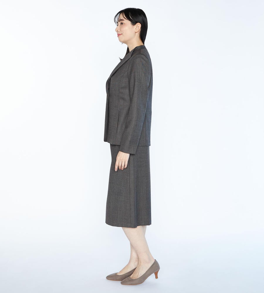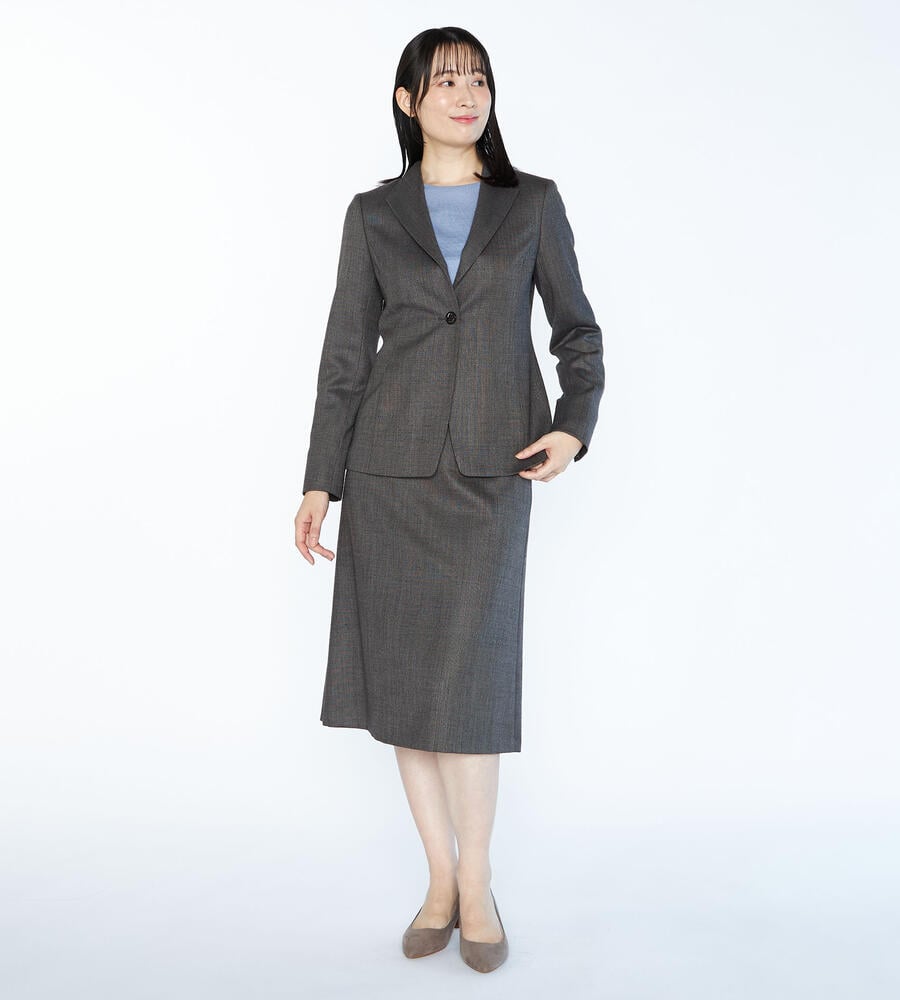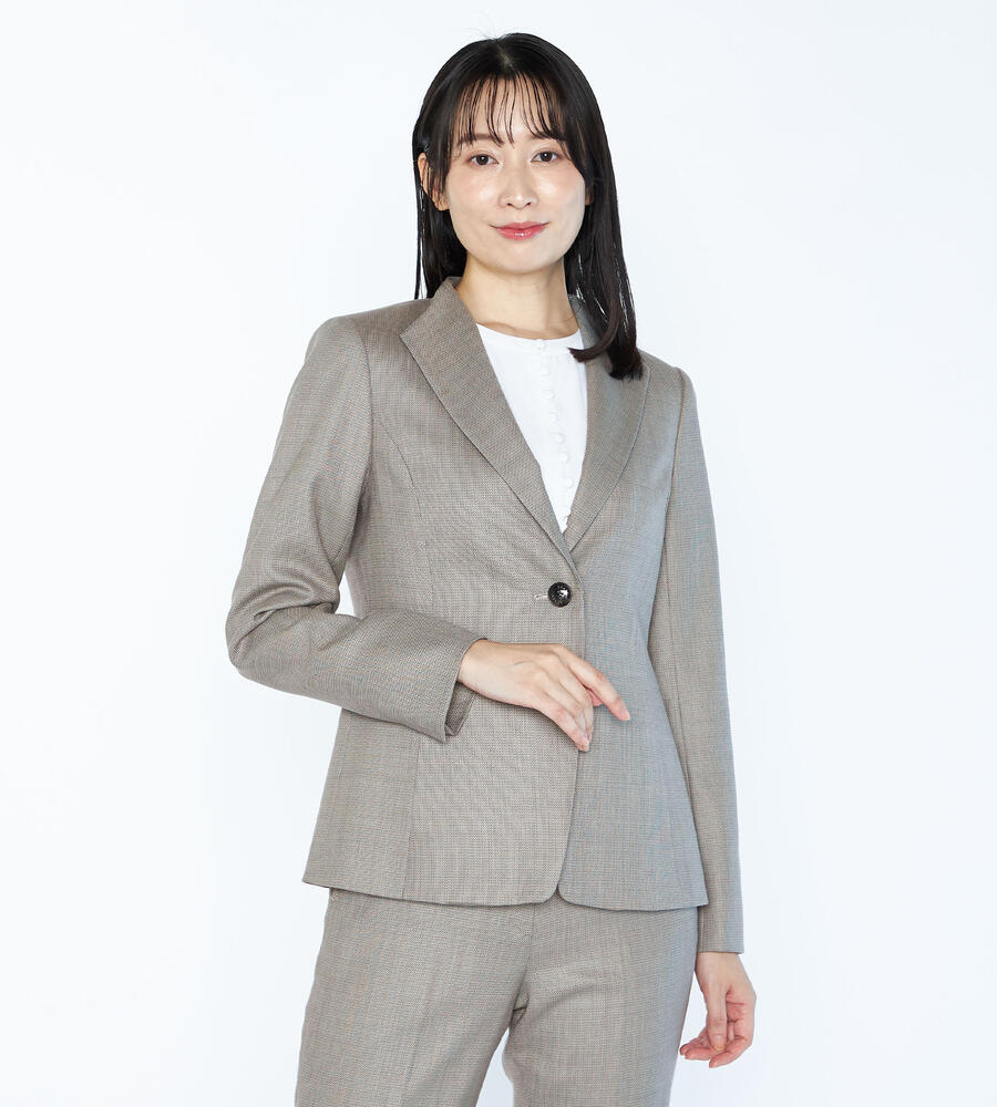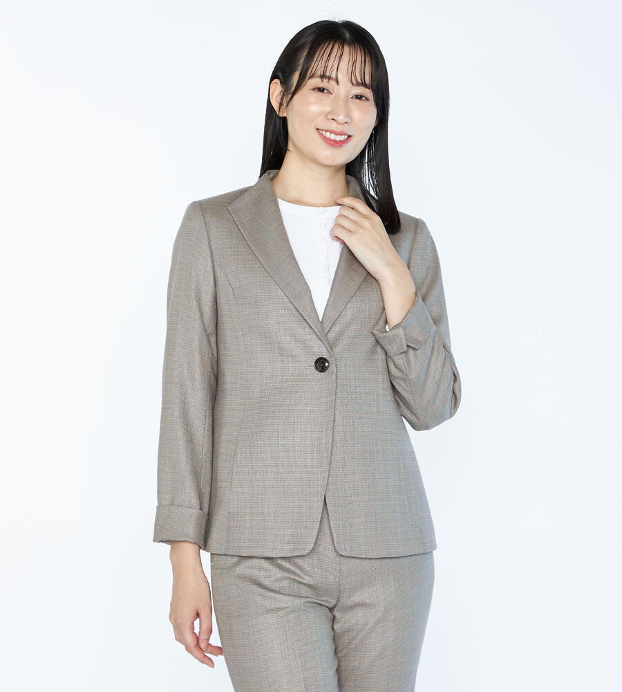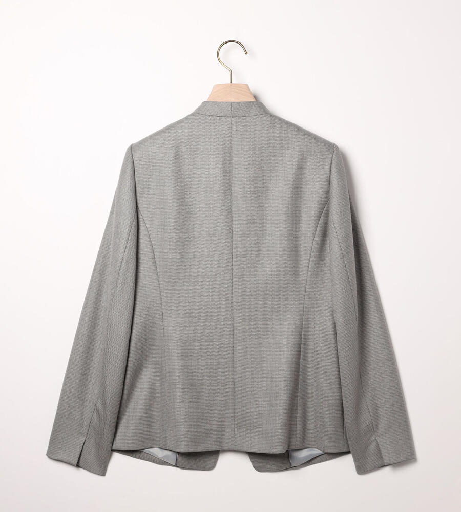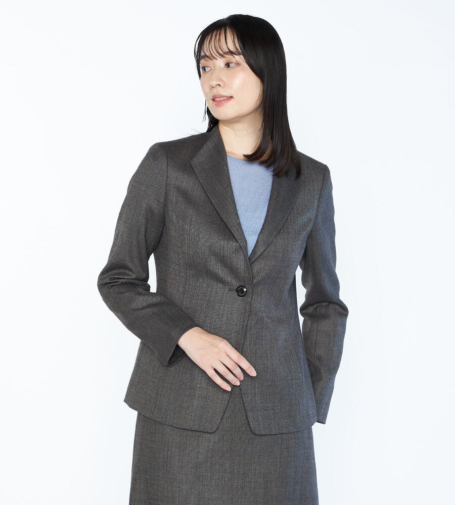 シャープなラペルが顔まわりをすっきりと見せ、スタイリッシュな印象に仕上げてくれるイーグルウールジャケット。表地は上質な毛100%素材を採用、軽やかに着こなせる半裏仕立て。1つボタンにはさりげなくブランドロゴをあしらいました。同素材のスカート、またはパンツとセットアップで着用していただけます。