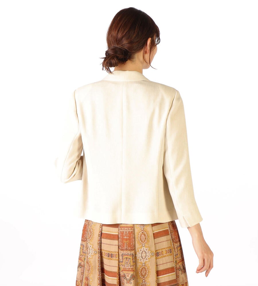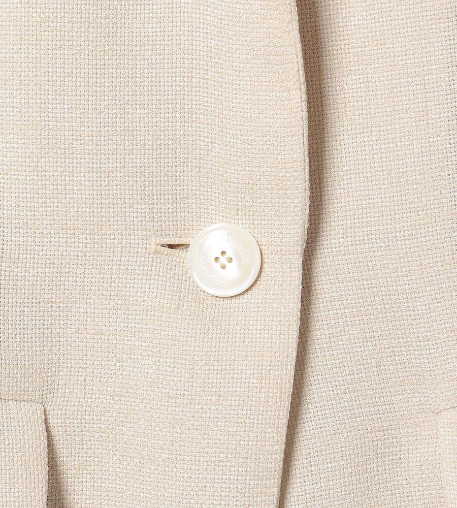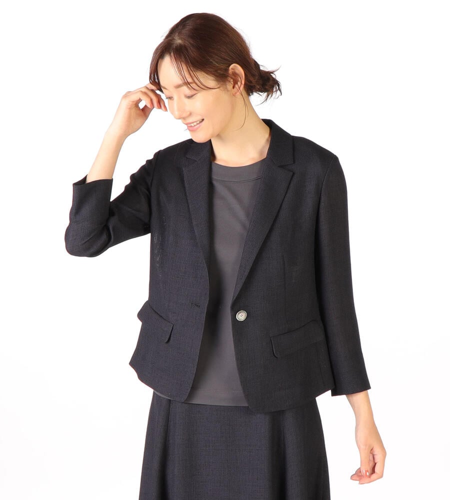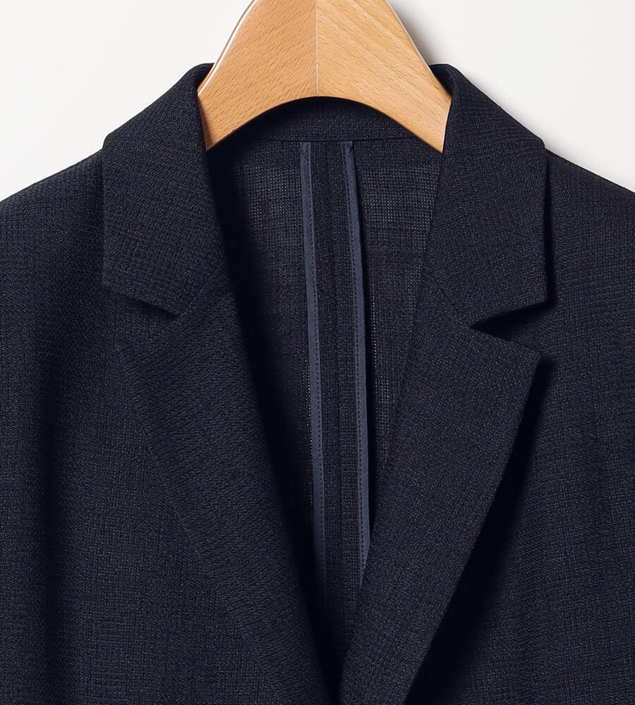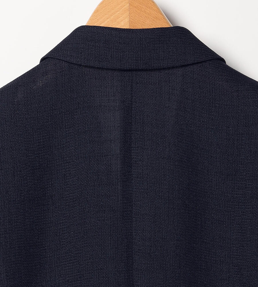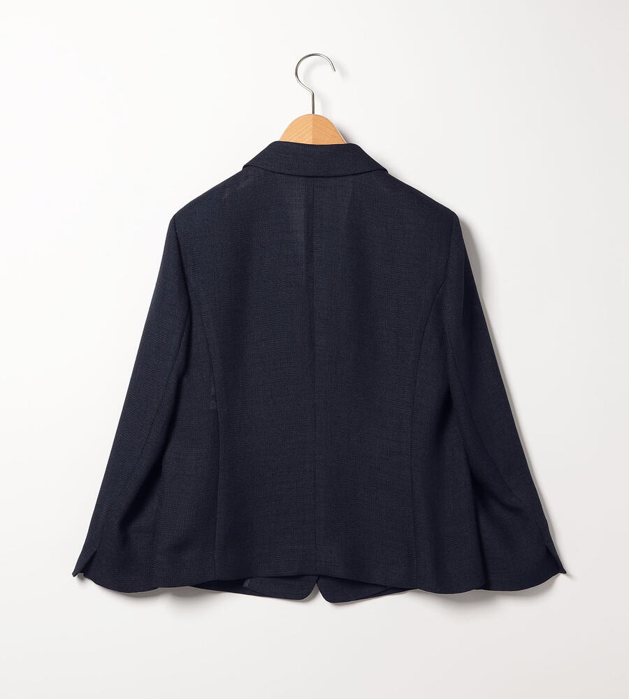 メッシュ編みのポリエステル生地を用いた、軽やかさと涼やかな着心地を両立したテーラードジャケットです。裏地や芯地を省いたアンコン仕立てながら、きちんと見えする美しいシルエットバランスにこだわりました。着丈と袖丈は短めにすることで、パンツにスカート、ワンピースなど、あらゆるアイテムとバランス良く着られるようデザイン。オフィスからプライベートでのお出かけシーンまで、幅広く活躍するアイテムです。