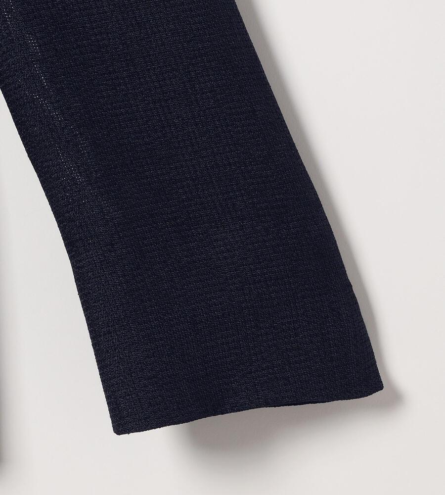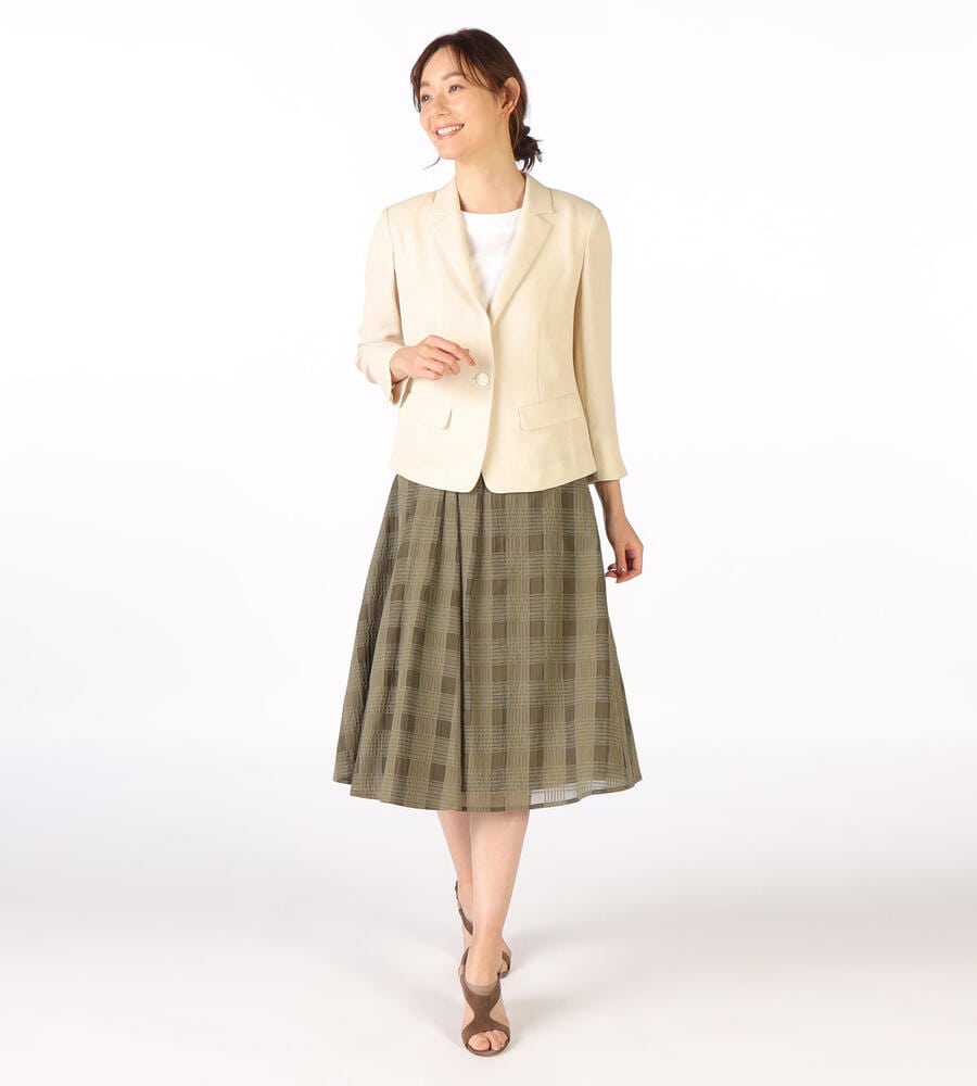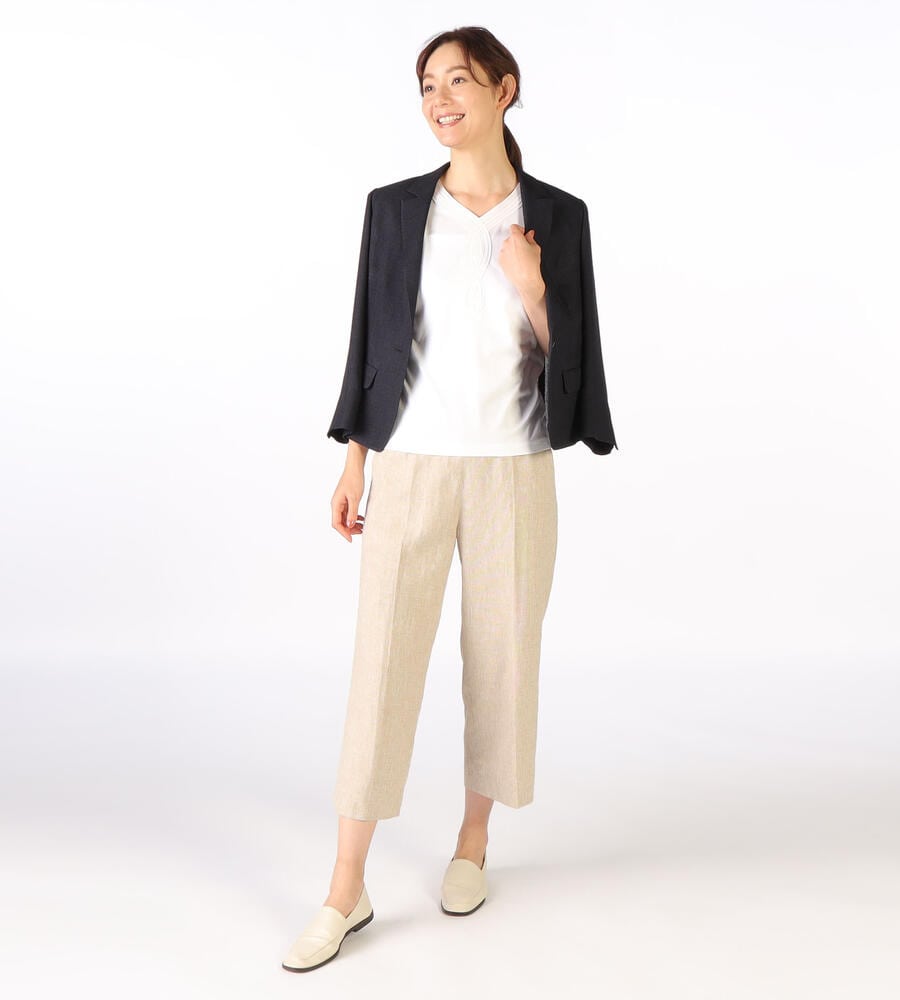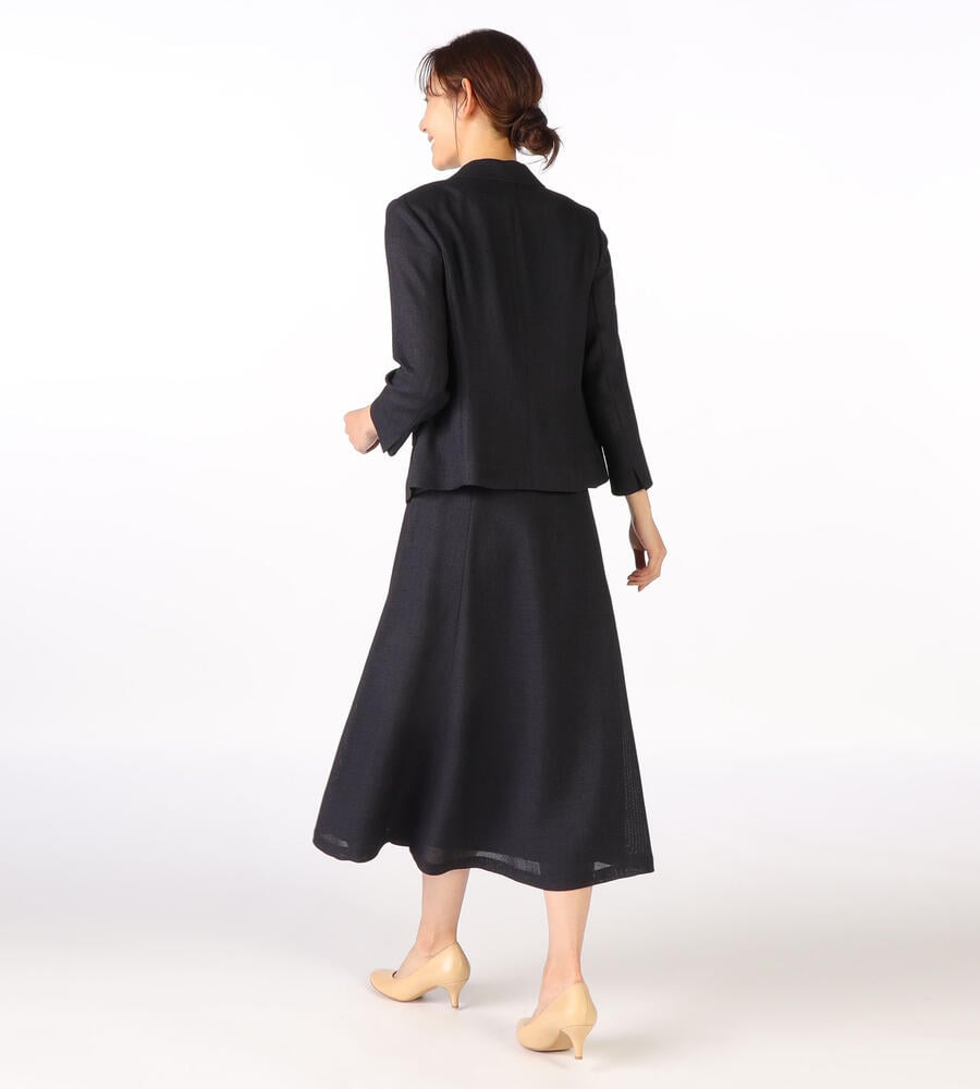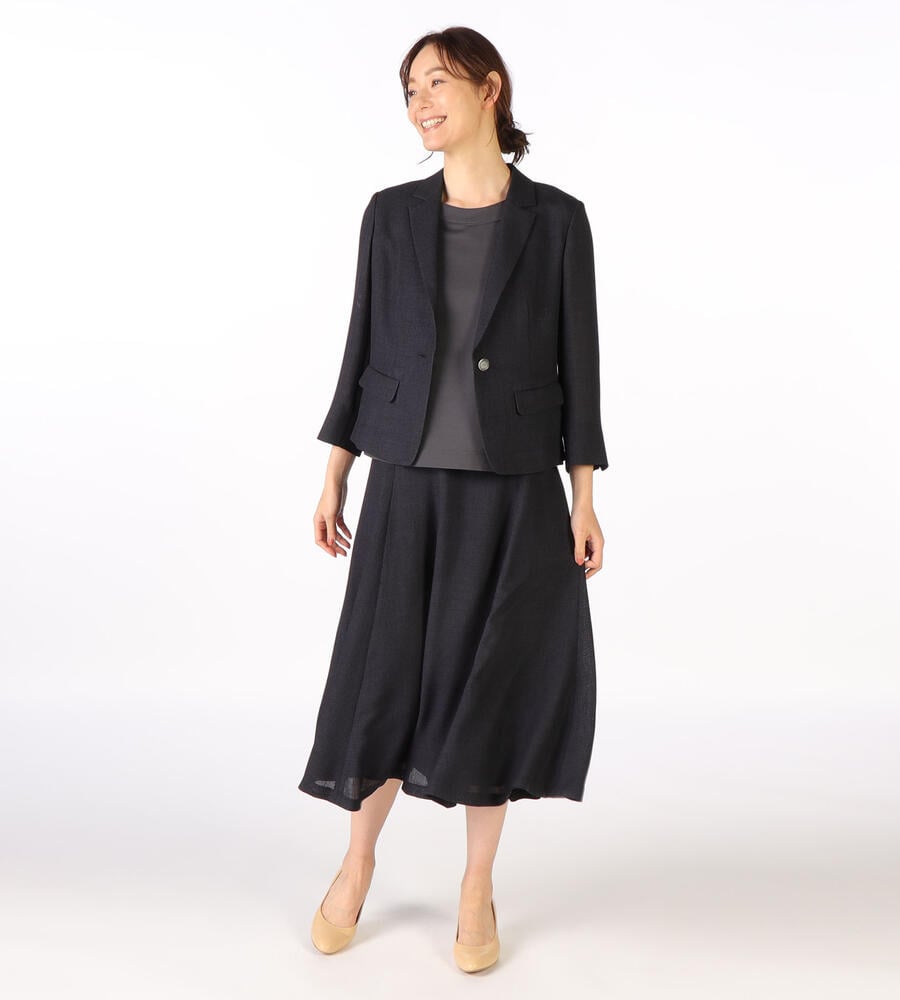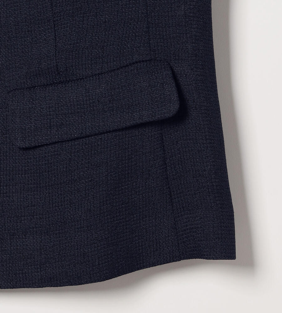 メッシュ編みのポリエステル生地を用いた、軽やかさと涼やかな着心地を両立したテーラードジャケットです。裏地や芯地を省いたアンコン仕立てながら、きちんと見えする美しいシルエットバランスにこだわりました。着丈と袖丈は短めにすることで、パンツにスカート、ワンピースなど、あらゆるアイテムとバランス良く着られるようデザイン。オフィスからプライベートでのお出かけシーンまで、幅広く活躍するアイテムです。