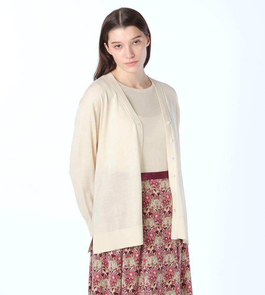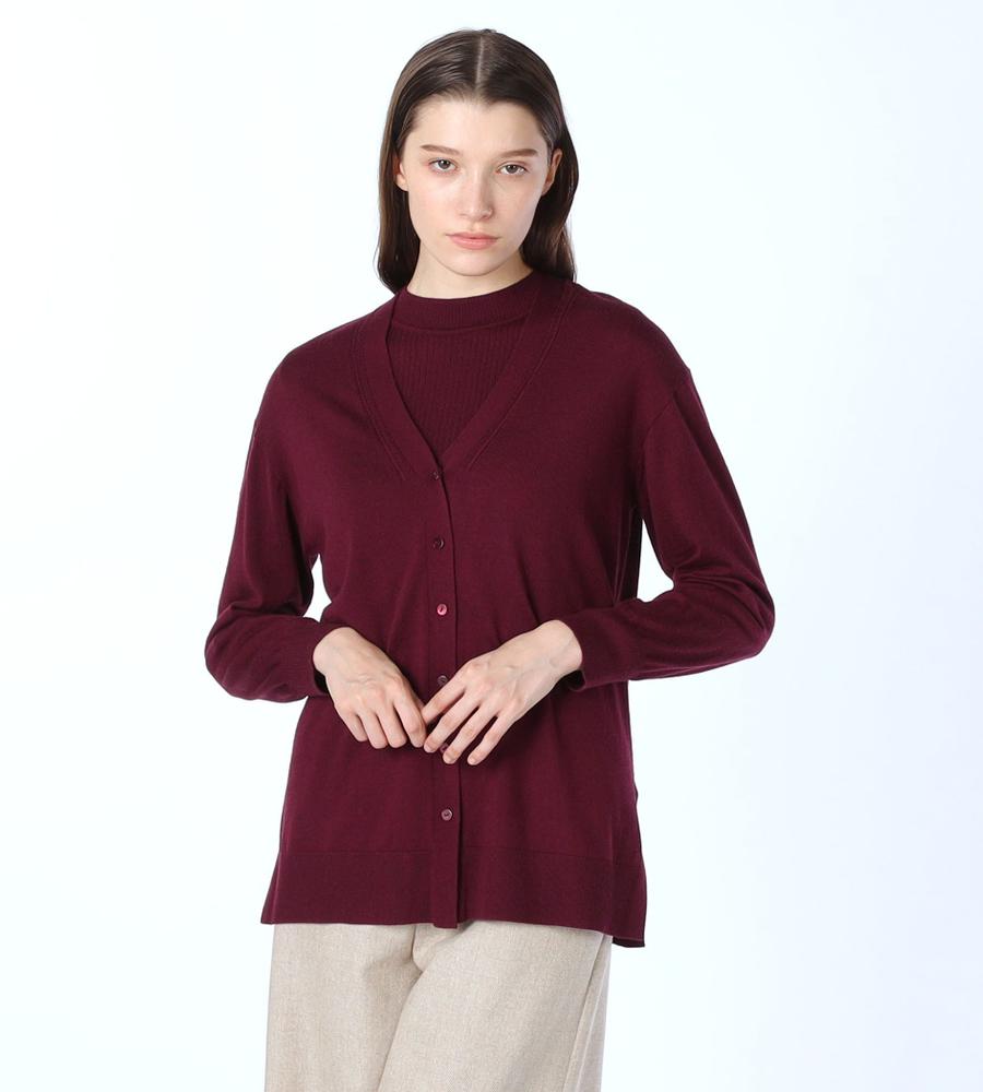 飽きのこないベーシックなデザインのVネックニットカーディガン。腰にかかるやや長めの着丈で、裾の両サイドにはスリットが施されています。滑らかな質感で気品が漂うウール100%素材。同シリーズのプルオーバーニットとアンサンブルでお召しいただけます。洗練されたカラーバリエーションを取り揃えています。