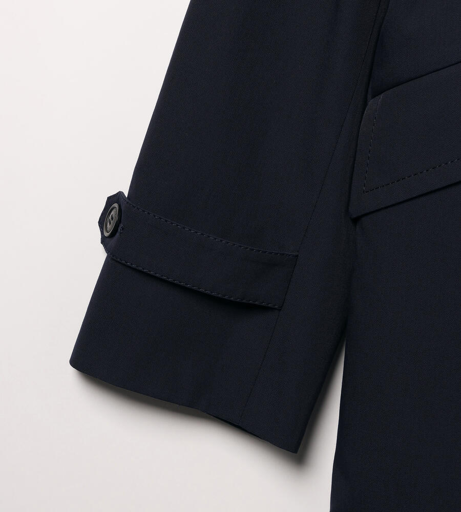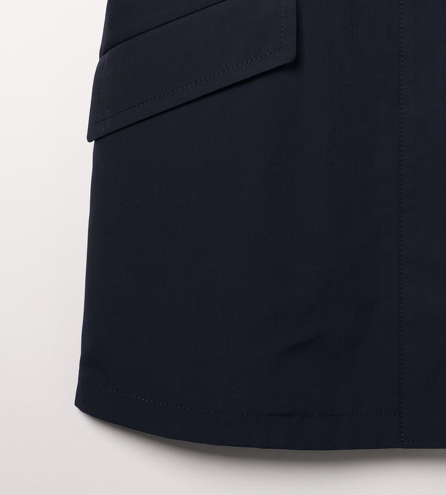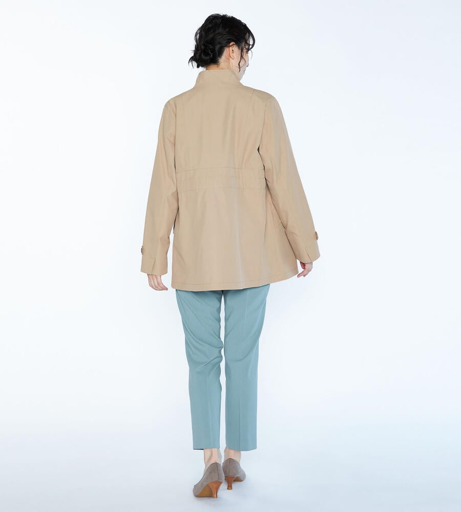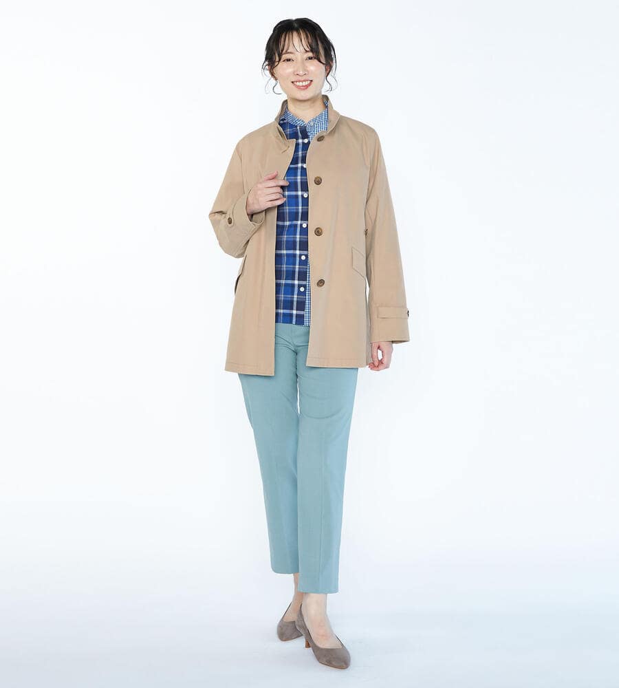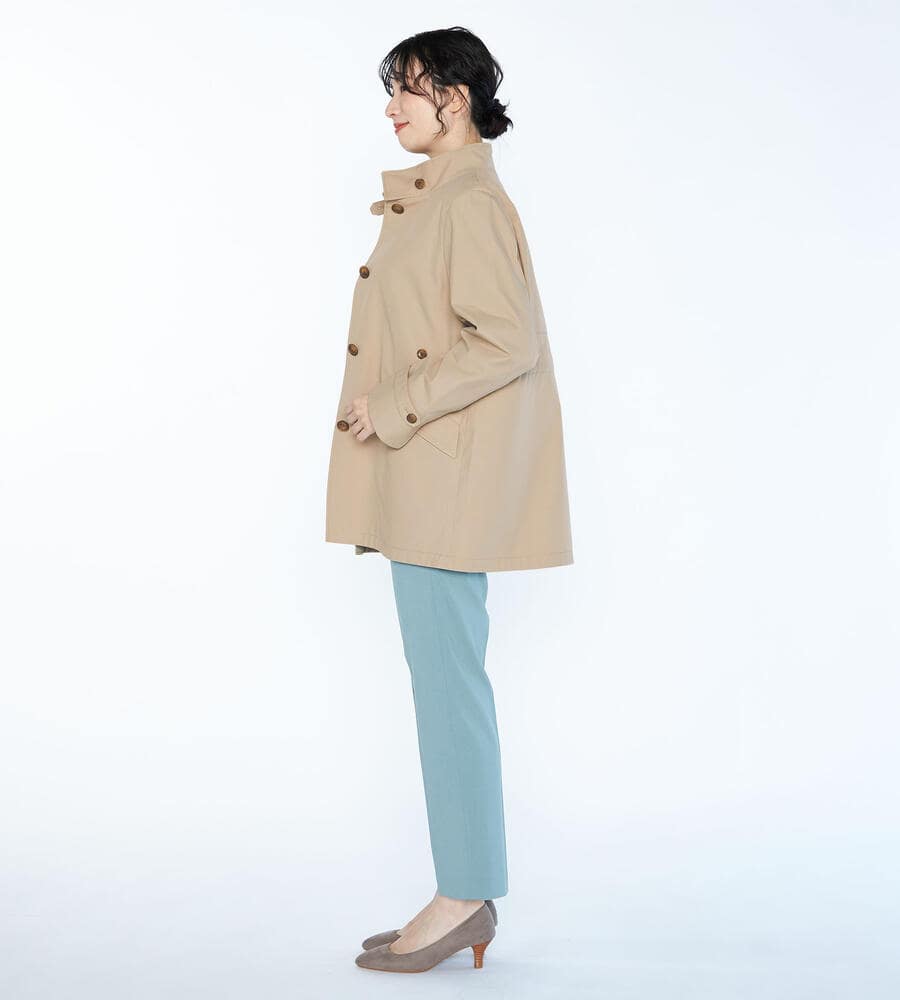 トラディショナルな雰囲気を醸しつつもモダンなエッセンスをプラスしたミドル丈コート。左右にフラップポケットを配置。ウエストサイドのボタン×ベルトディテールが腰位置を高く見せグッドバランスに。ポリエステルとコットンをブレンドしたシルキーシャンブレー素材を採用しています。