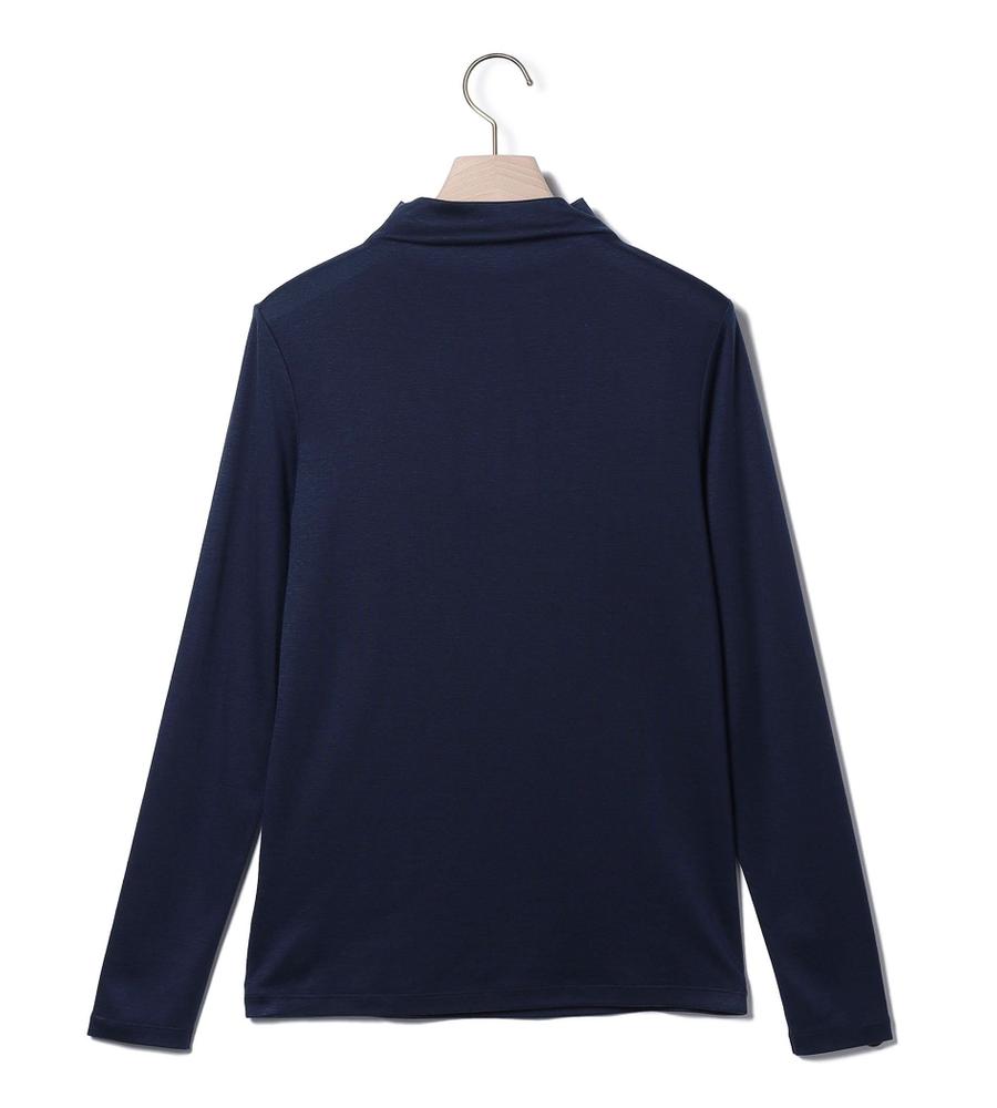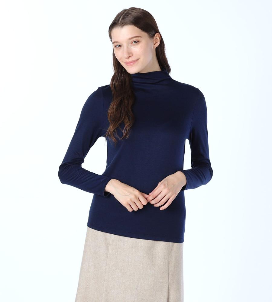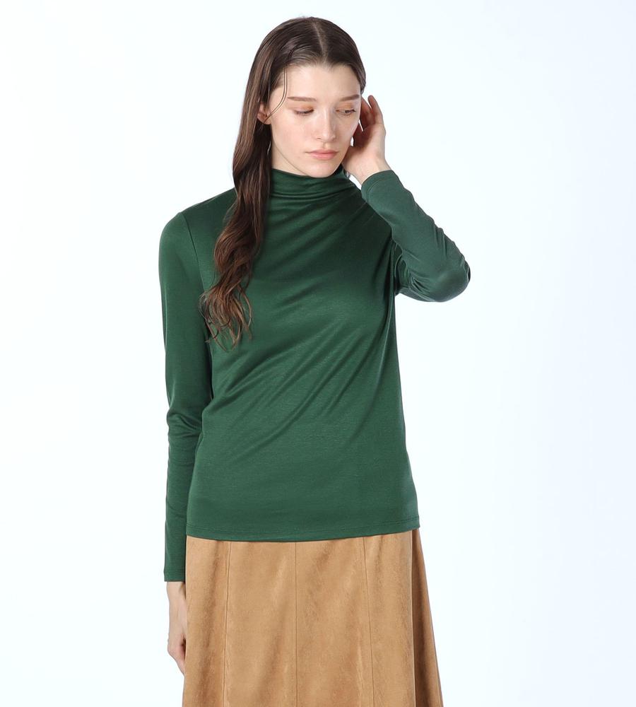 シンプルな無地のロングスリーブカットソー。襟元まで温かいハイネックタイプです。ハイクオリティなジャージ素材を使用しました。薄手の生地ですので、秋口から春先までロングシーズン着回し可能です。適度にフィット感がありモタつかないシルエットのトップスは、ジャケットやカーディガンのインナーにも最適。