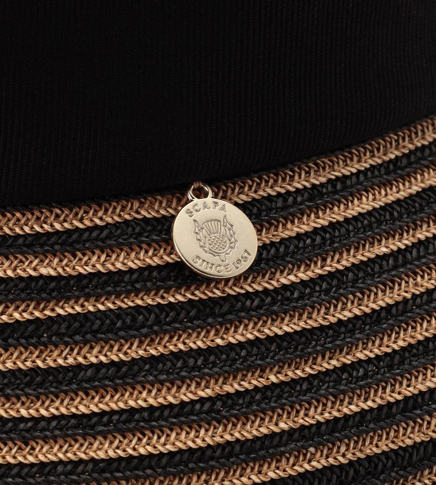 春夏シーズンにぴったりな軽いかぶり心地のペーパーハット。広めのツバはメリハリのあるおしゃれなストライプデザイン。ブランドロゴマークのチャームがついた太めのハットバンドがスタイリッシュなデザインポイント。シンプルなデザインで様々な着こなしと好相性。実用性とデザイン性を兼ね備えたアイテムです。