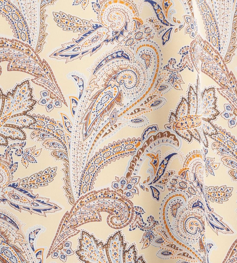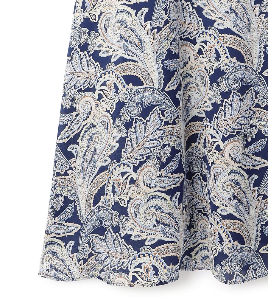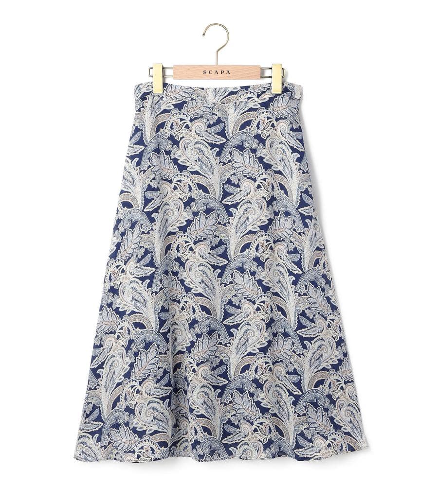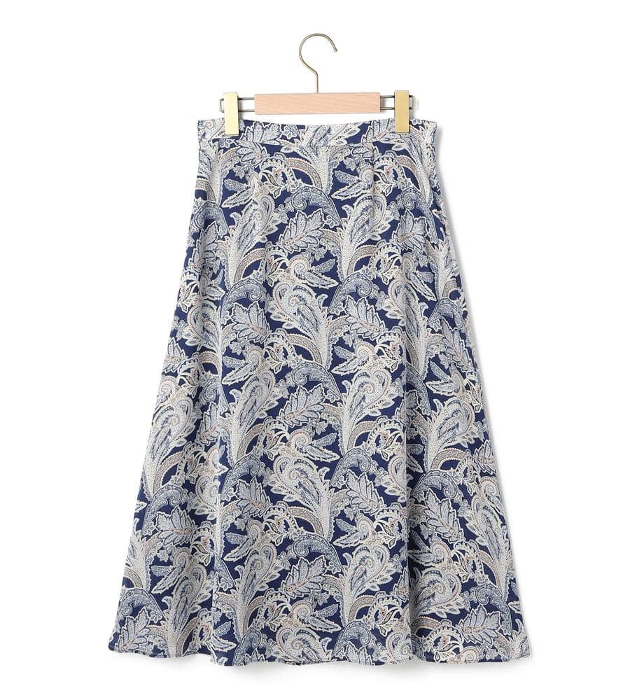 ボヘミアンなペイズリー柄が目を惹く、ひざ下丈のスカート。フレアに広がるドレープ感のあるシルエットが優雅さを演出。着脱がスムーズかつ美しいフィット感のサイドジップを採用。トップスをインしてもアウトにしても映える、季節を問わずコーディネートの主役になる華やかなデザインのアイテムです。