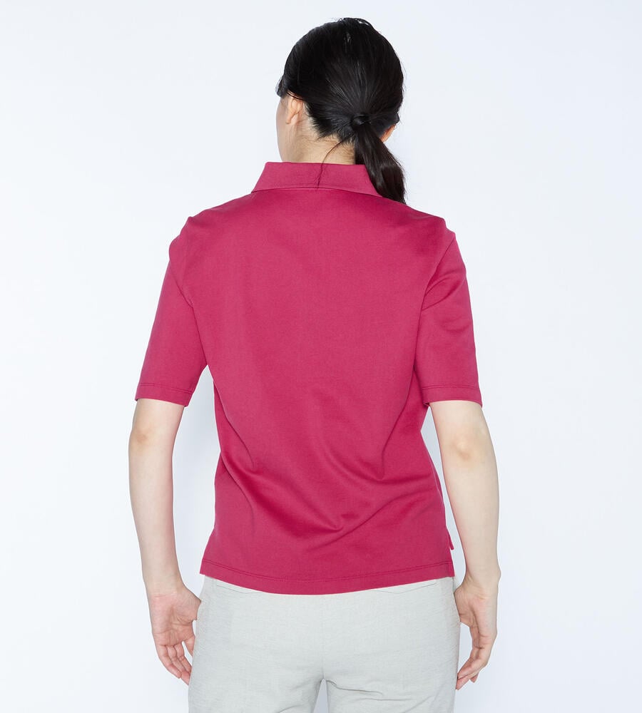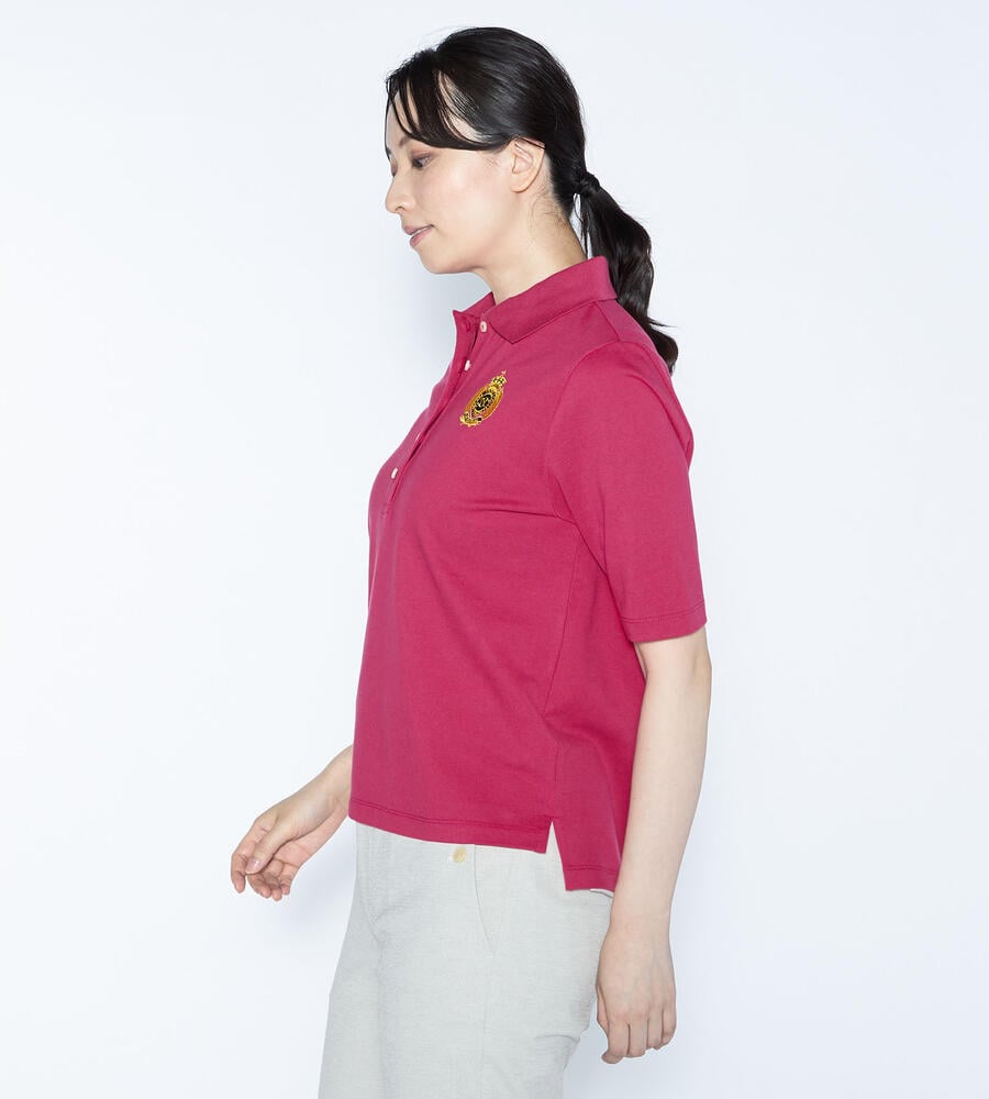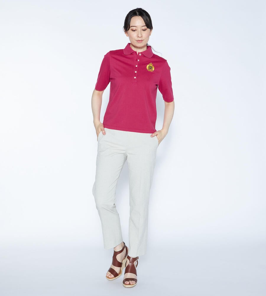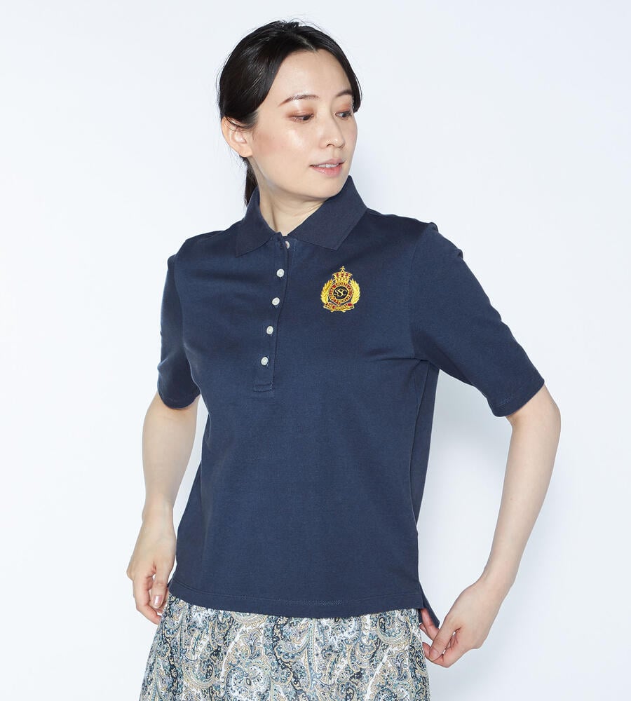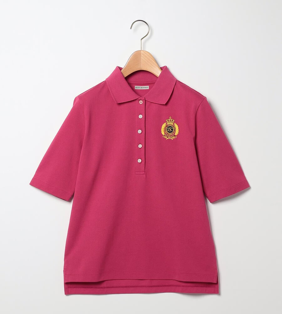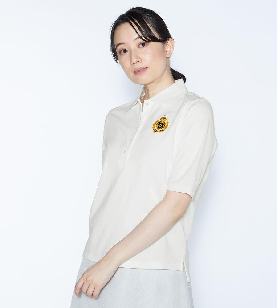 さっぱりとした鹿の子素材を用いたポロシャツです。コットン100%の素材は、肌当たりの良さも満点。身体に寄り添うようなコンパクトなサイジングで、バランスの取れた着こなしを後押しします。胸元に添えたワッペンが、クラシカルなスポーツスタイルを思わせるアクセント。敢えてスカートを合わせてフェミニンに楽しむのもおすすめです。