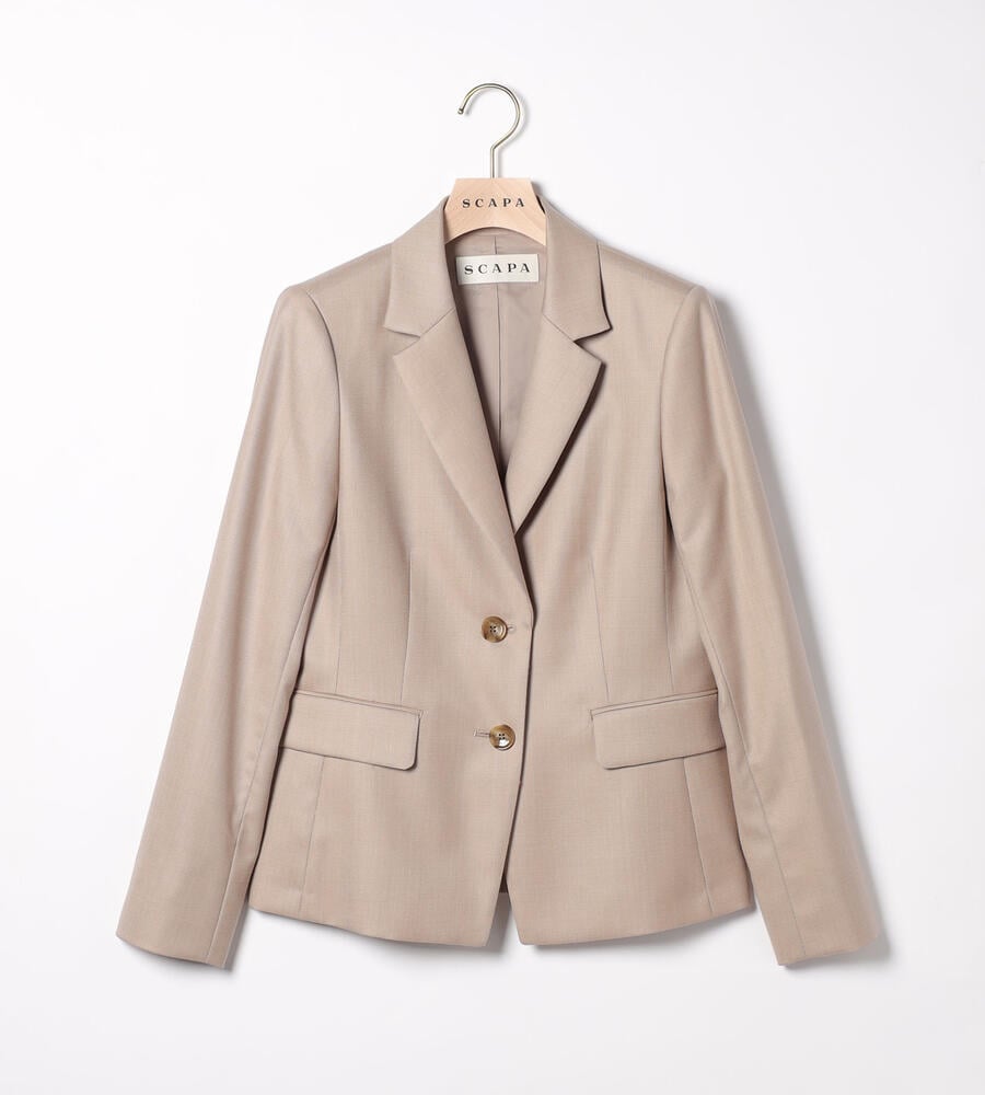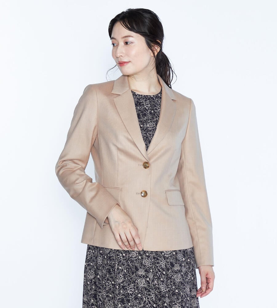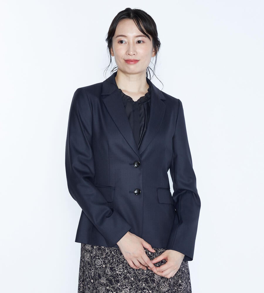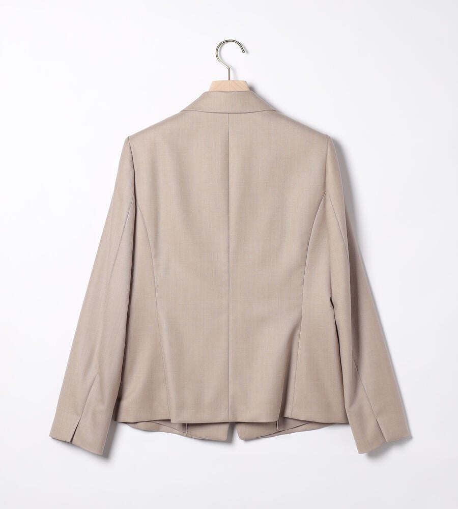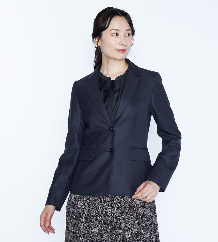 上質な光沢を持つウール素材を用いたラペル付きのジャケット。身体のラインに沿うようなダーツを入れて、スマートなシルエットに仕上げています。ウールながらもさらりとしたタッチの素材を用いており、気品のある表情を備えているのがポイント。ビジネススタイルに大人の品格を加える1点です。