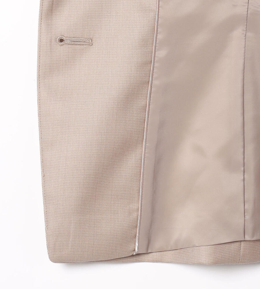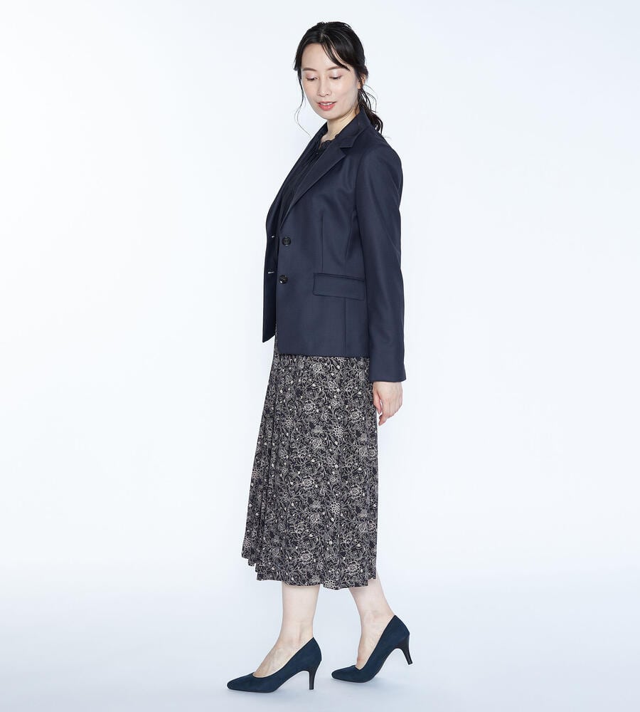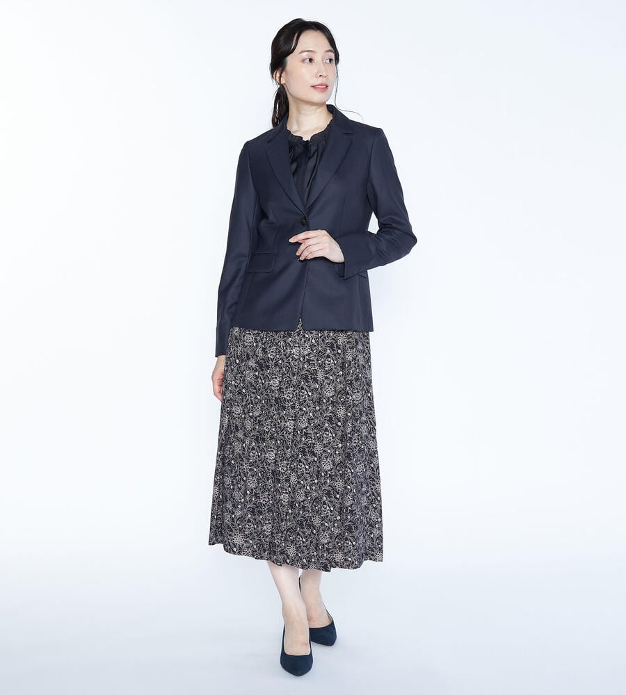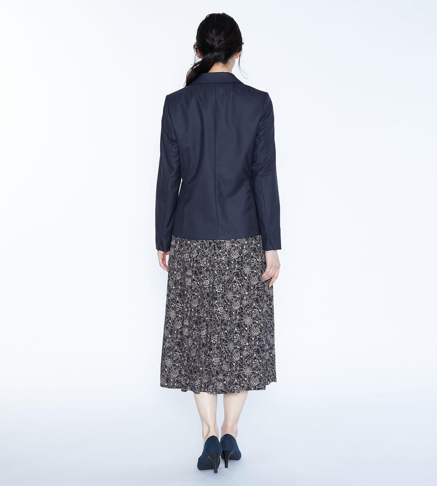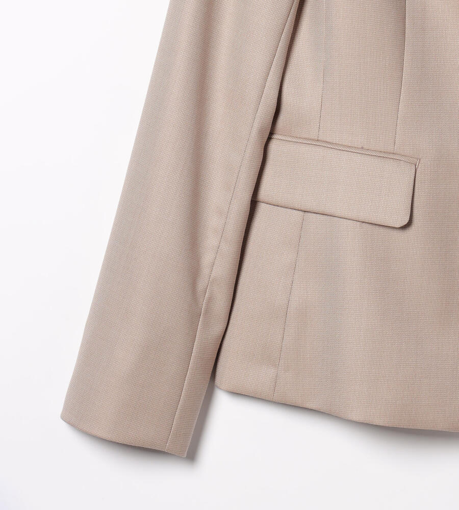 上質な光沢を持つウール素材を用いたラペル付きのジャケット。身体のラインに沿うようなダーツを入れて、スマートなシルエットに仕上げています。ウールながらもさらりとしたタッチの素材を用いており、気品のある表情を備えているのがポイント。ビジネススタイルに大人の品格を加える1点です。