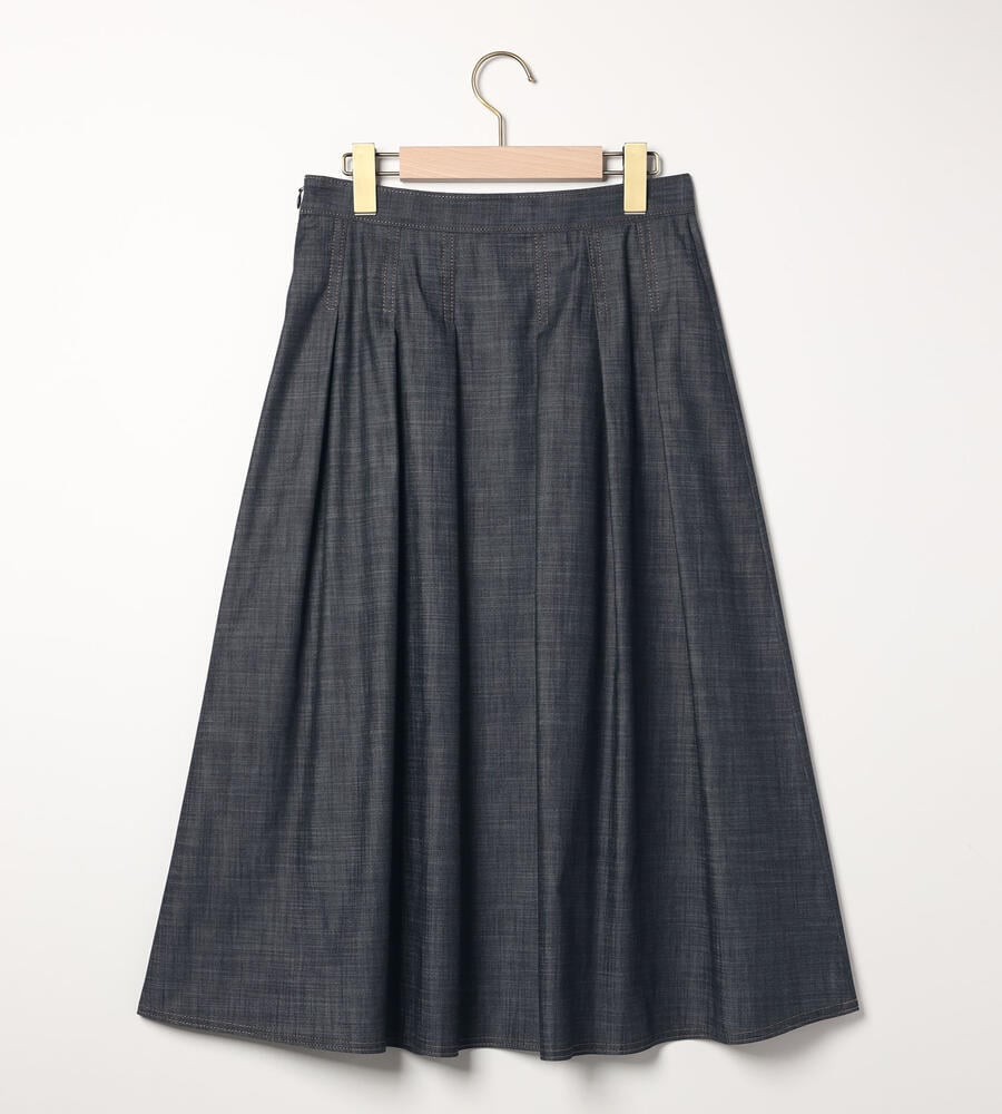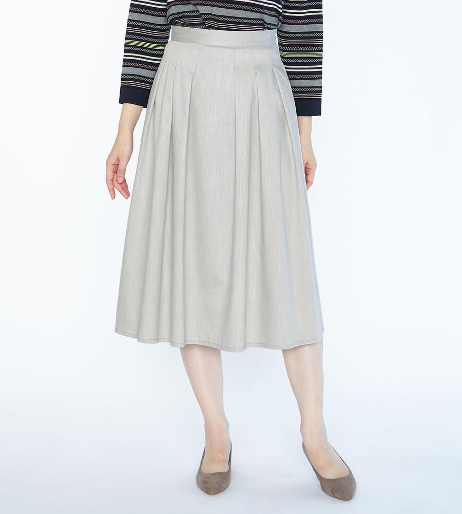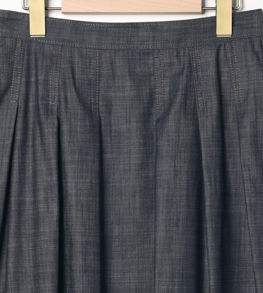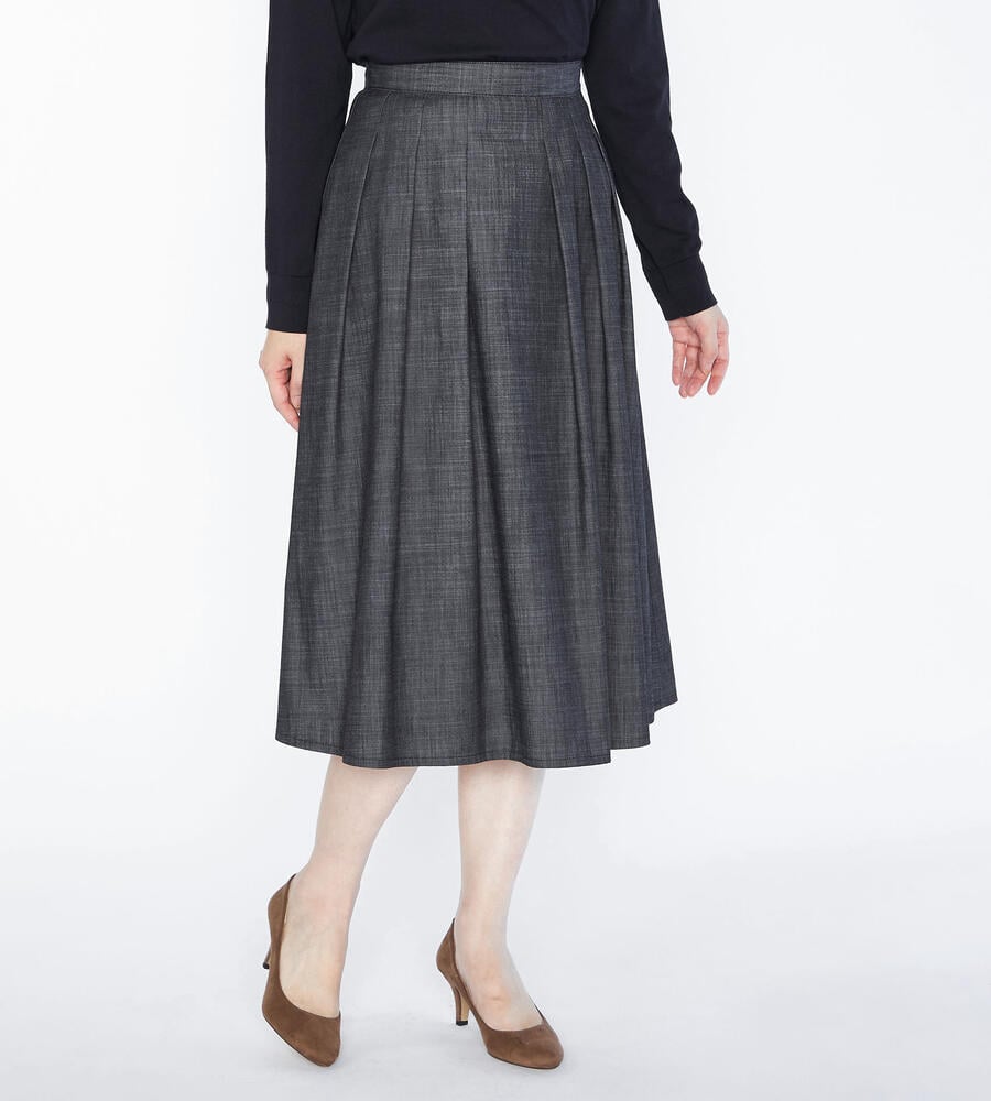 シャンブレーならではの上品な光沢で、着こなしを格調高く映し出すスカート。膝が隠れる着丈とタックから展開する優美なプリーツで、立ち姿を美しく引き立てます。素材感は軽やかで、動きが出やすいのも特徴。トップスの裾をインさせるスタイリングもバランスよくまとまります。パンプスはもちろん、サンダルなどとも好相性のアイテムです。