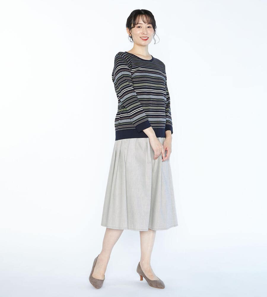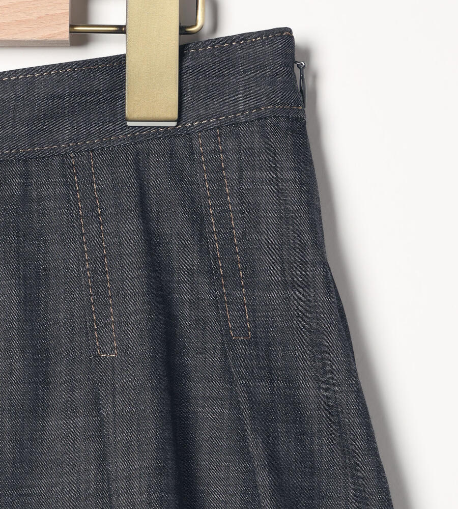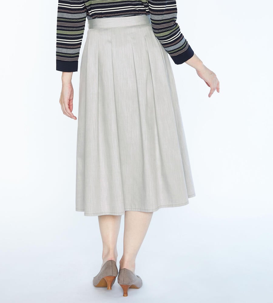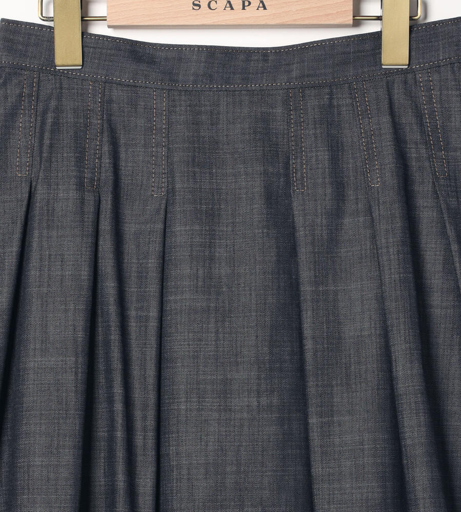 シャンブレーならではの上品な光沢で、着こなしを格調高く映し出すスカート。膝が隠れる着丈とタックから展開する優美なプリーツで、立ち姿を美しく引き立てます。素材感は軽やかで、動きが出やすいのも特徴。トップスの裾をインさせるスタイリングもバランスよくまとまります。パンプスはもちろん、サンダルなどとも好相性のアイテムです。