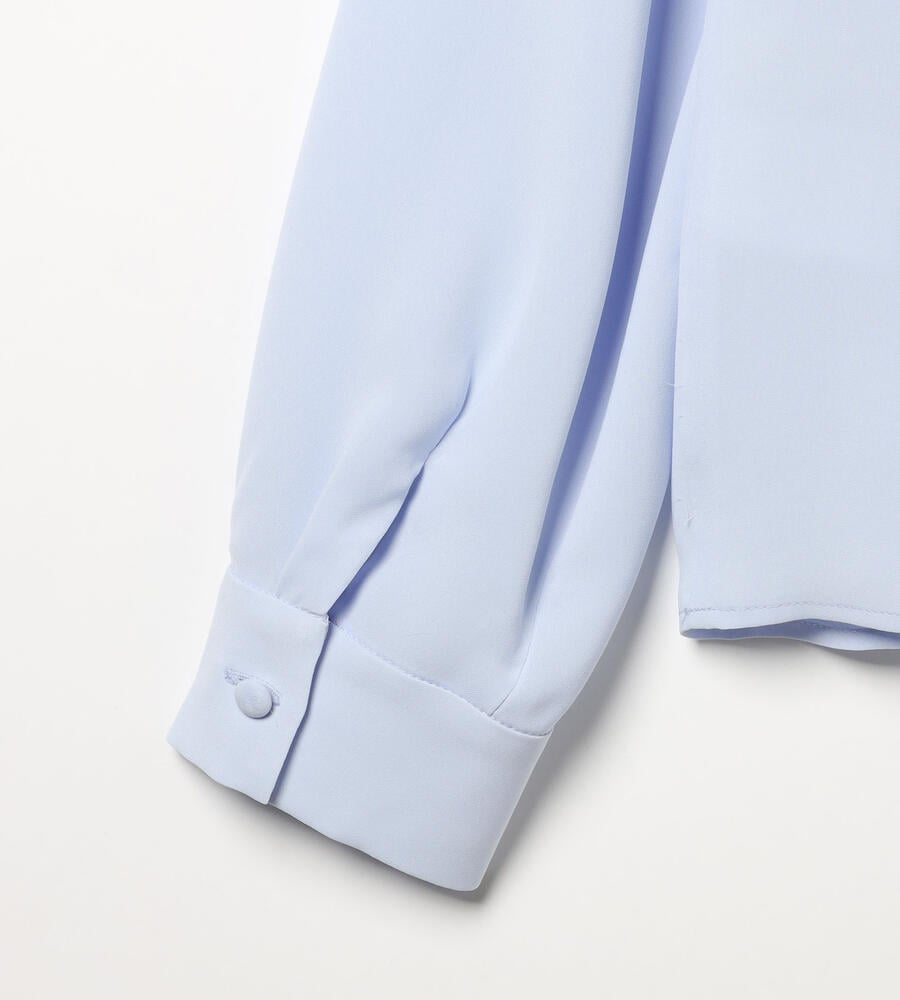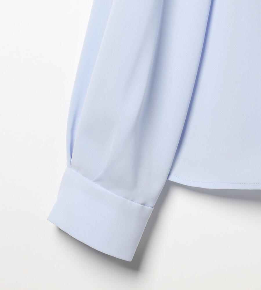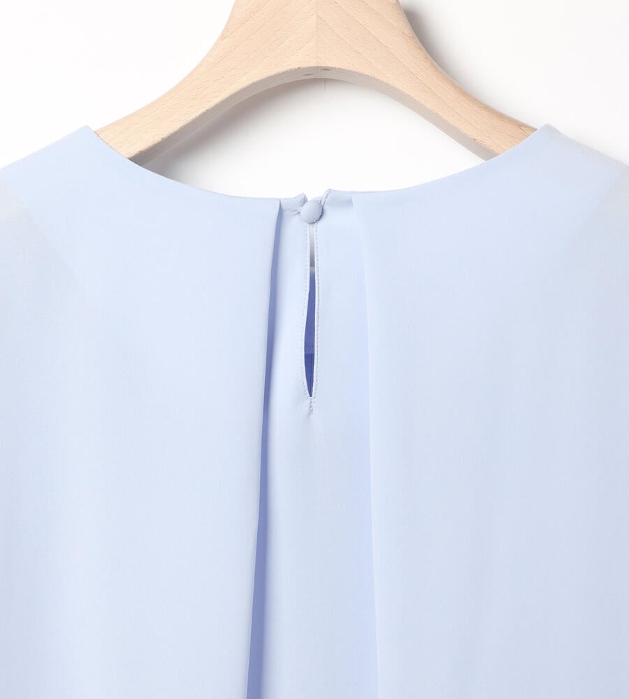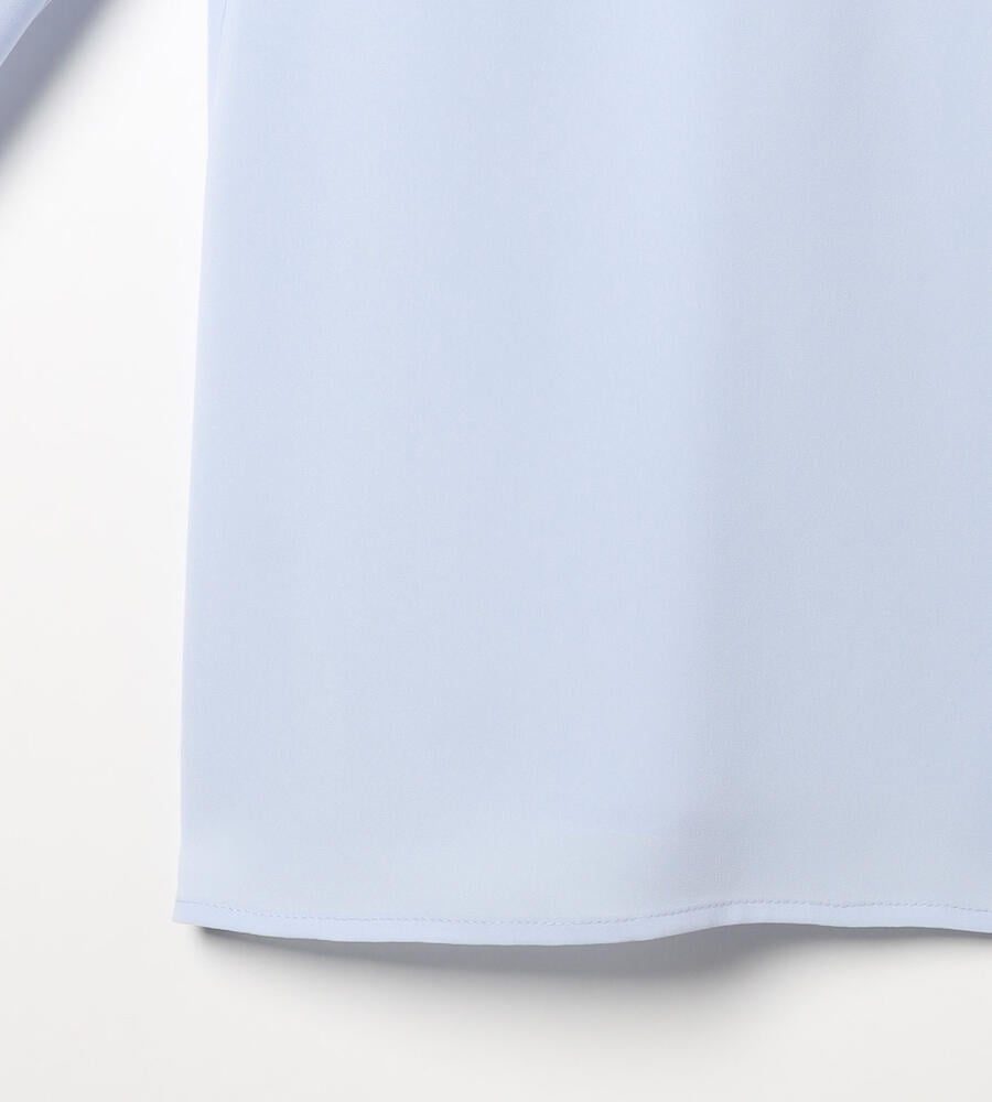 しなやかでやわらかな風合いのソフトツイル生地で仕立てた長袖ブラウス。透け感のある生地で軽やかな重ね着コーディネートが完成します。コロンとした愛らしいくるみボタン、ドレープ感が美しいタック入りのバックシルエットもポイント。きちんと感のあるデザインで、オン・オフ問わず幅広く活躍するアイテムです。